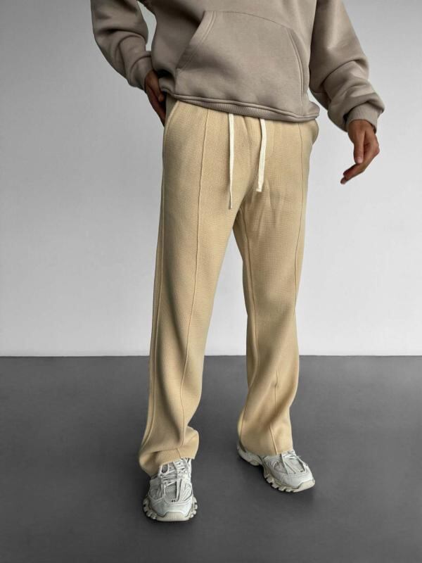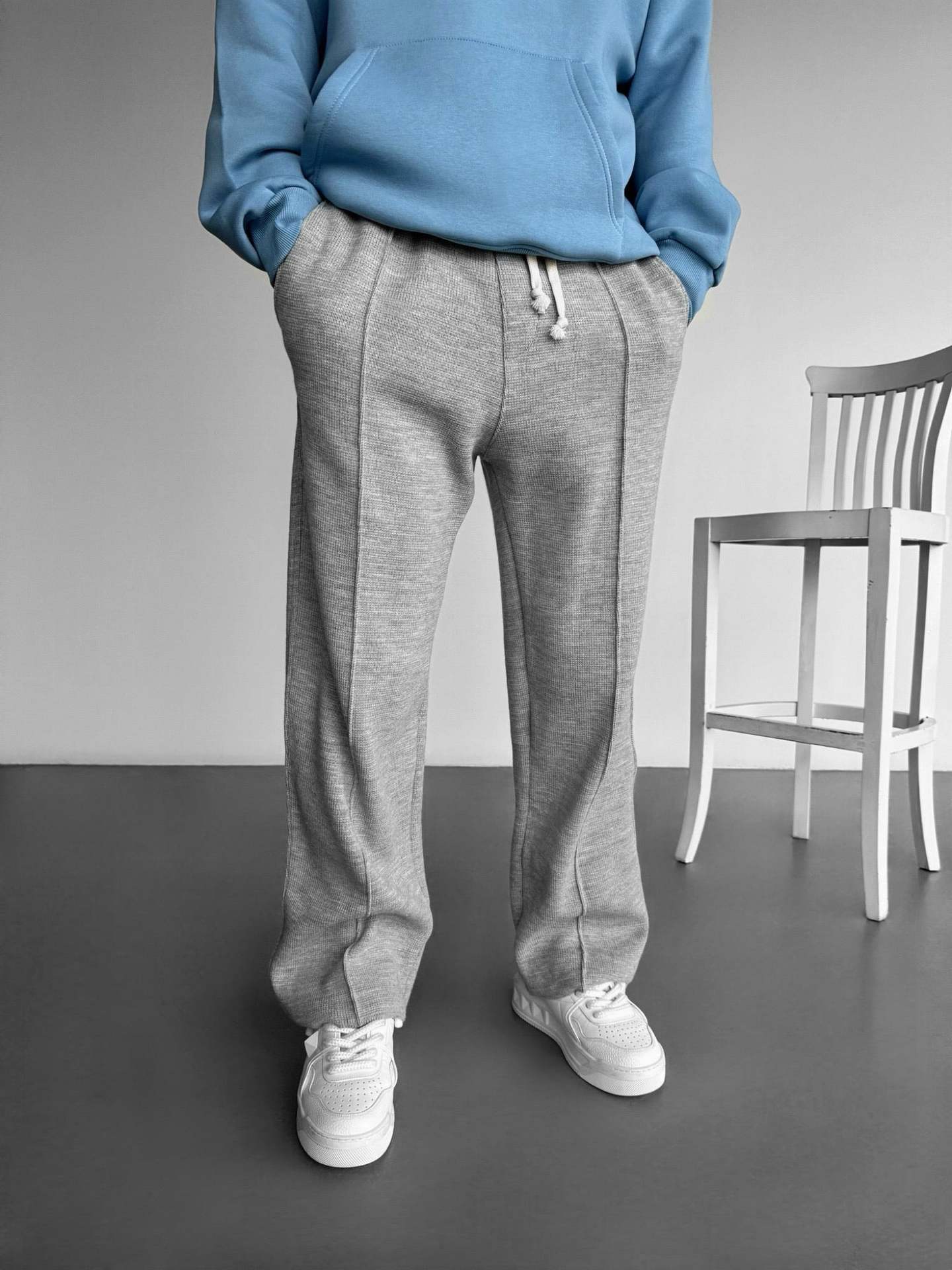 パンツ メンズ 男性用 ワッフル素材 ストレートパンツ カジュアル リラックス 普段使い ルームウェア 長ズボン ポリエステル ストレッチ 伸縮性 通気性 春秋 シンプル ベーシック 無地 ウエスト紐付き 洗濯機OK