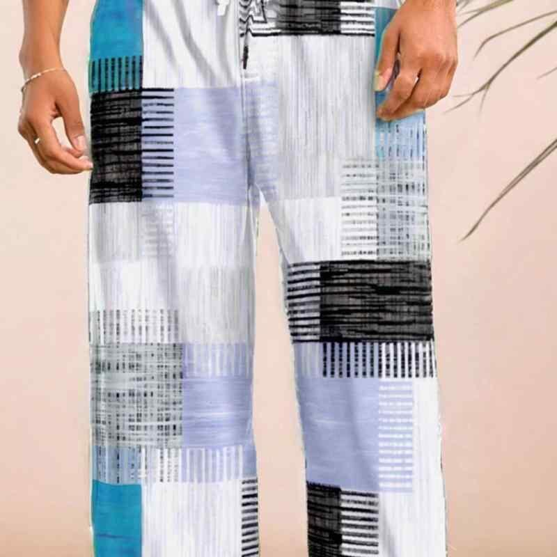 パンツ メンズ 男性用 カジュアル ファッション 涼感 薄手 ゆったり チェック柄 長ズボン ミッドウエスト ストレート 綿混 ポリエステル 微ストレッチ レッド ブルー
