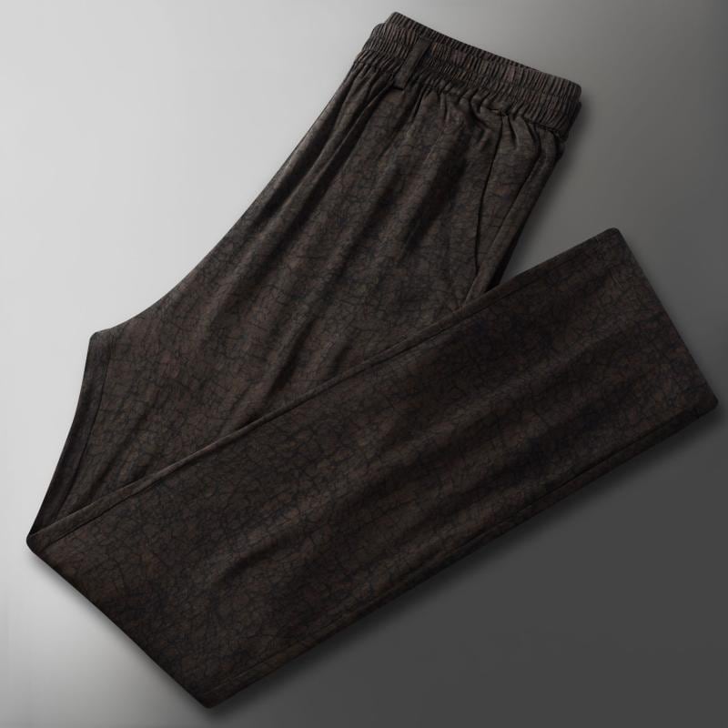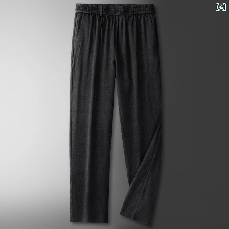 パンツ メンズ 桑蚕シルク クラック柄 高級感 なめらか 薄手 軽量 吸湿速乾 通気性 抗菌 シワになりにくい イージーケア ストレッチ ゆったり ストレート カジュアル 夏用