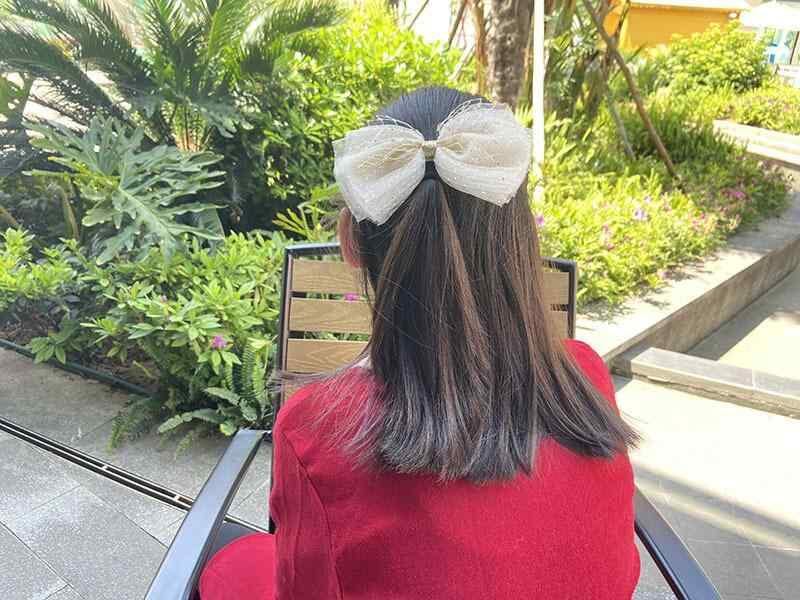 ヘアクリップ キッズ 女の子 子供用 韓国風 チュール ビッグリボン 蝶々結び 髪飾り ヘアアクセサリー バレッタ 髪留め プリンセス かわいい オフホワイト ネイビー シルバーピンク グレー