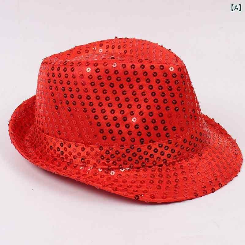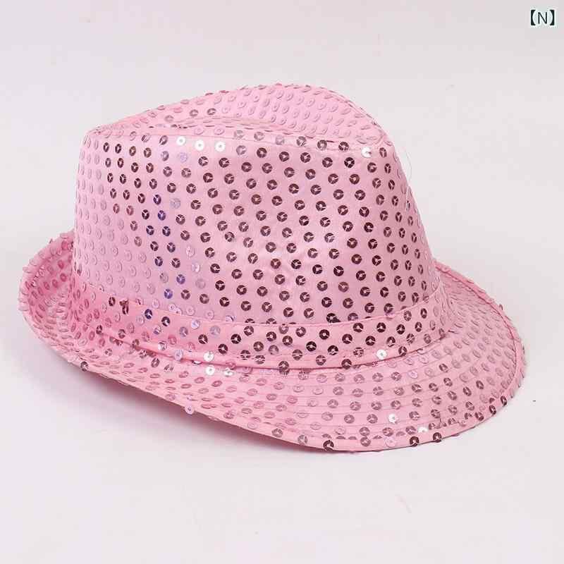 ジャズハット 大人 子供 兼用 スタイリッシュ シルバー スパンコール 舞台 マジックショー パフォーマンス ハット アクリル素材 ワイド フラットブリム 演劇 ダンス コスプレ イベント用 日よけ UVカット