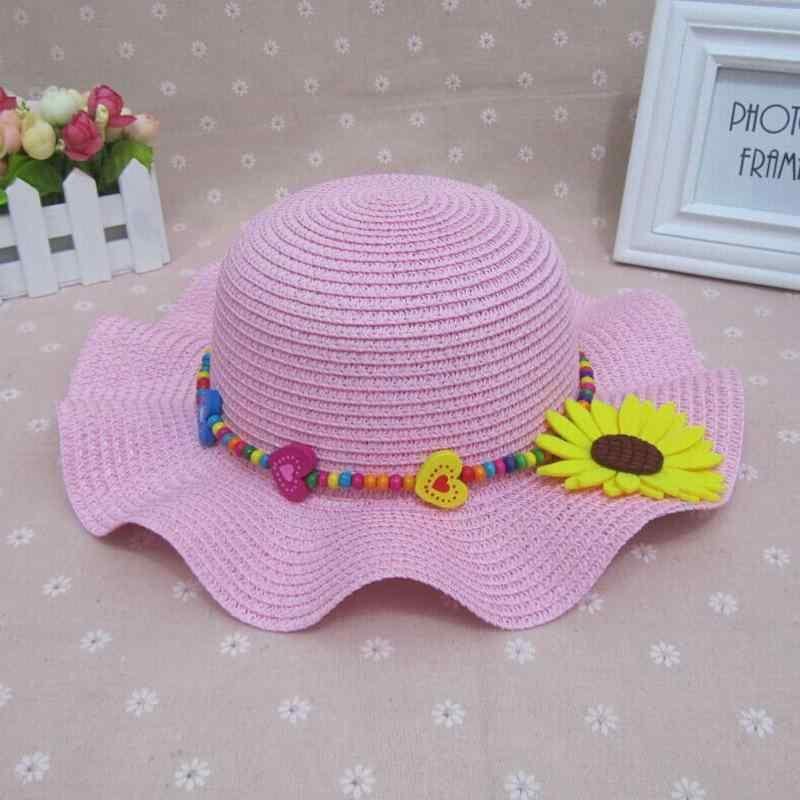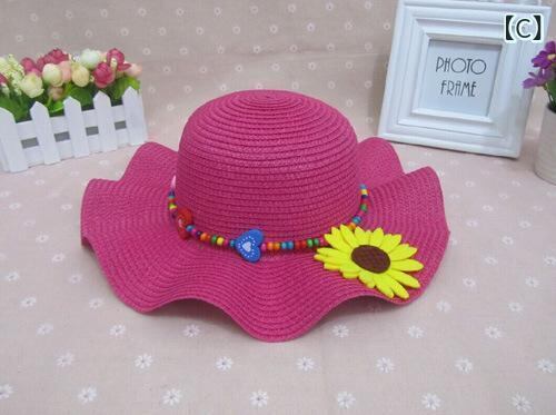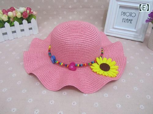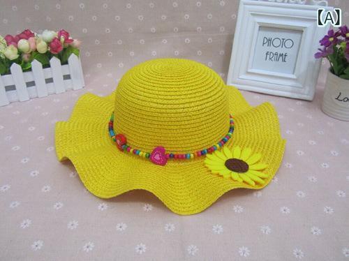 帽子 キッズ 女の子 フリル つば広 ハット 無地 花モチーフ サマーハット 日よけ 紫外線対策 UVカット 夏用 お出かけ 通園 ビーチ レジャー 軽量 通気性 イエロー ピンク系 ブルー系 ラウンドトップ