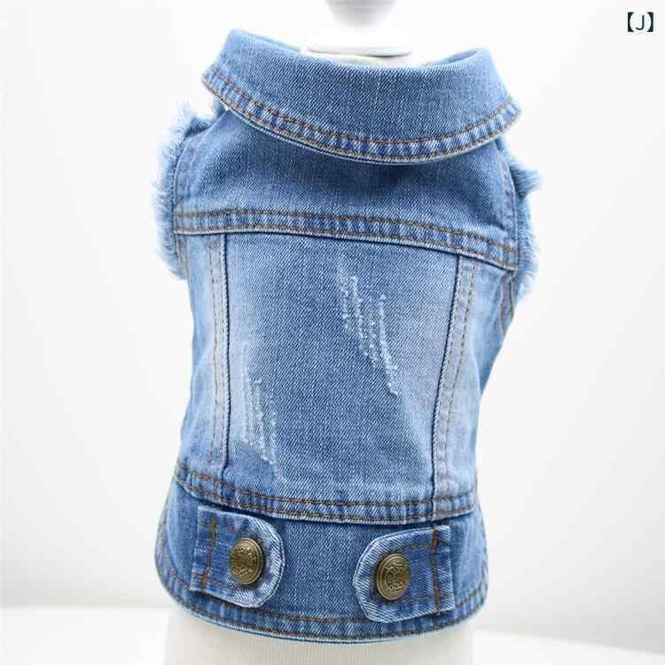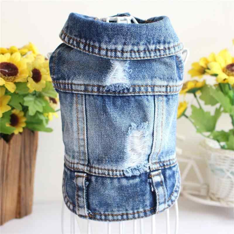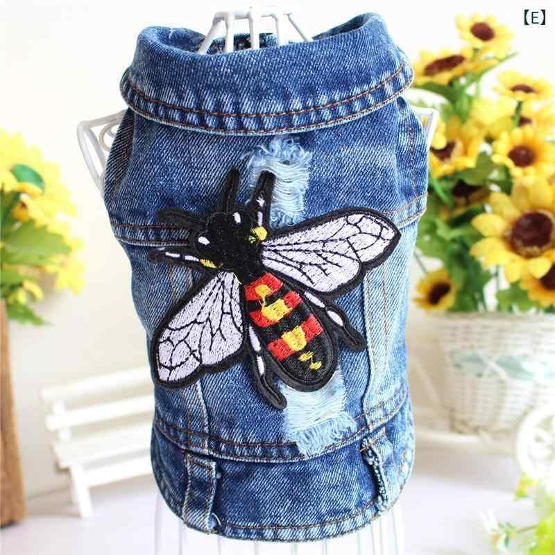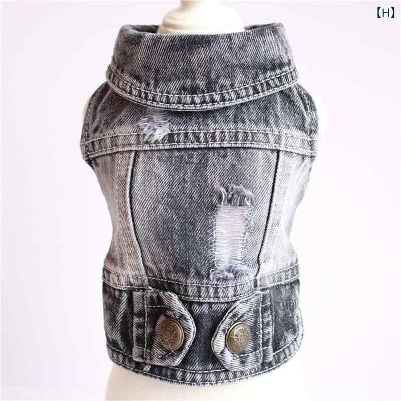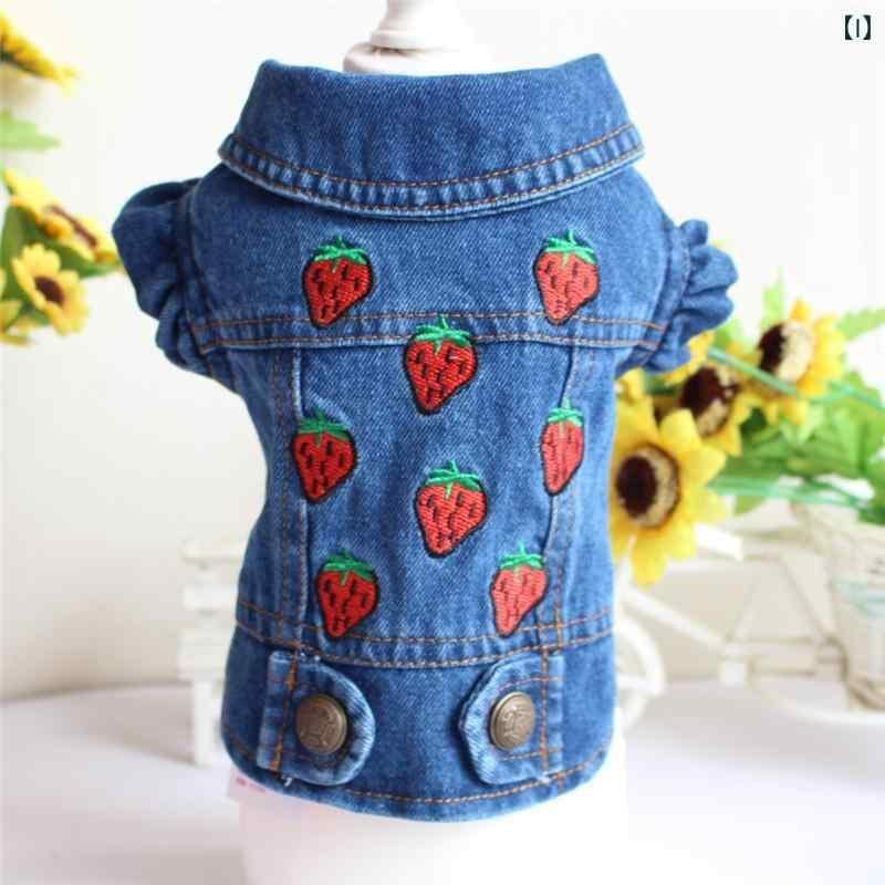 犬服 デニム ベスト ジャケット ドッグウェア 小型犬 トイプードル チワワ ポメラニアン 男女兼用 カジュアルスタイル ブルー フード付き フリンジ ダメージ加工 イチゴ刺繍
