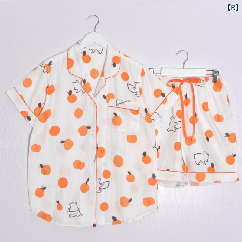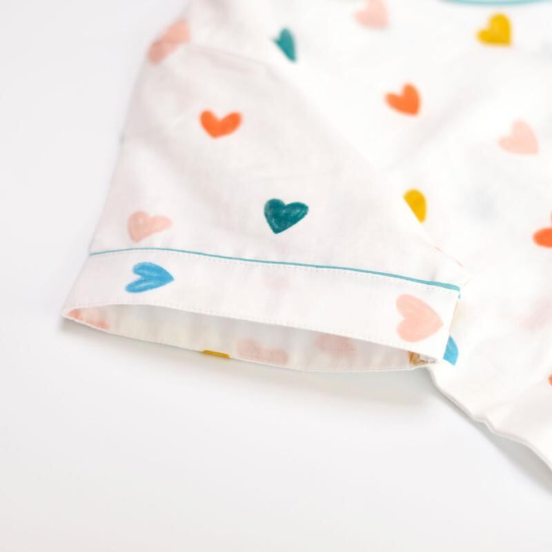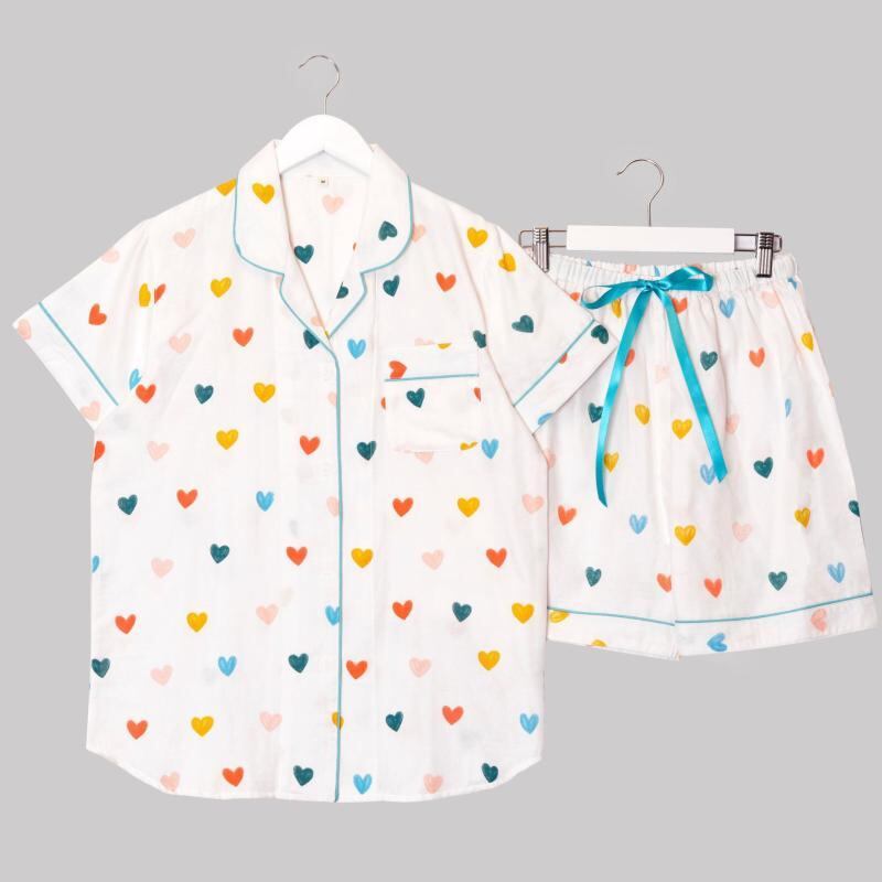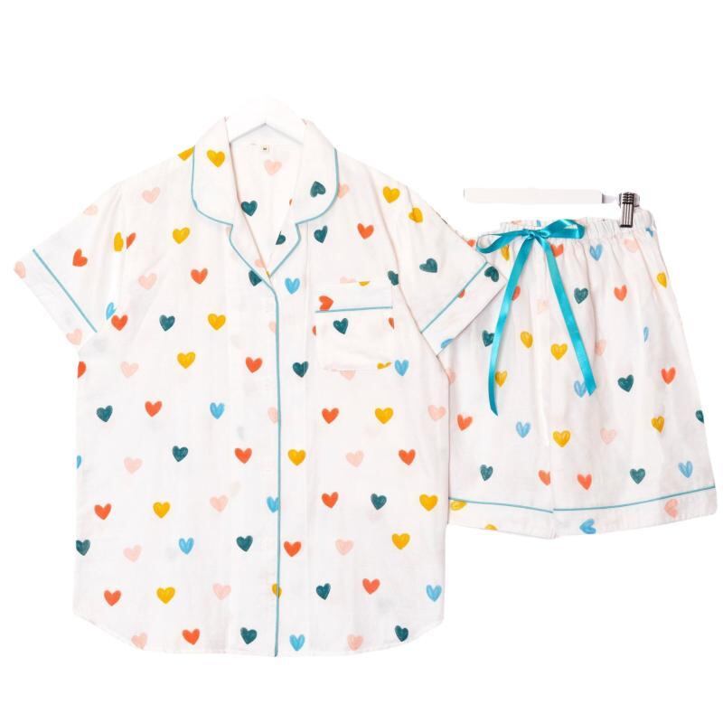 パジャマ レディース 女性用 夏用 半袖 ショートパンツ ルームウェア 綿100% ガーゼ素材 襟付き 開襟 薄手 吸湿速乾 通気性 快適 部屋着 ハート柄 クマ柄 かわいい カジュアル 上下セット