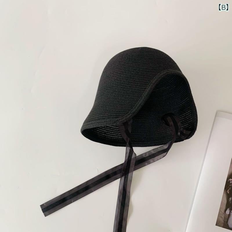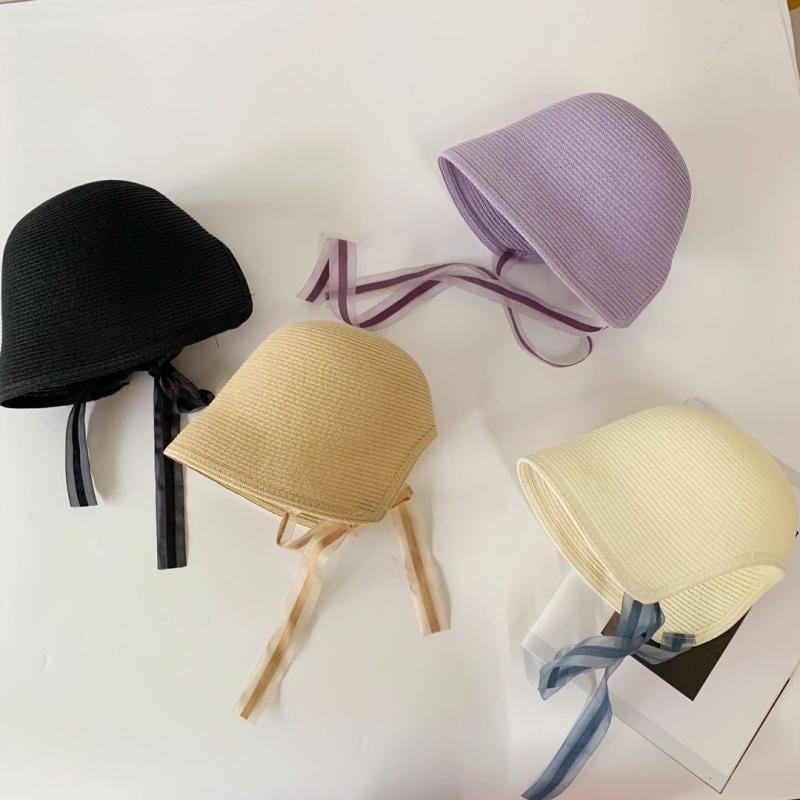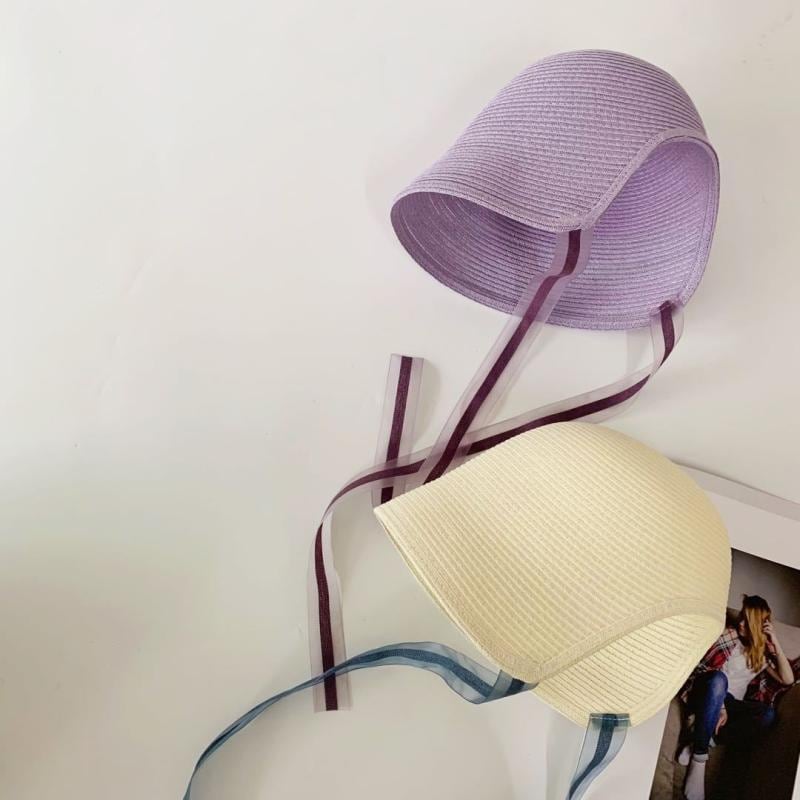 麦わら帽子 女の子 キッズ 宮廷プリンセス風 バケットハット 後ろ開き ポニーテール対応 日よけ UVカット ストローハット レース かわいい おしゃれ 韓国風 春 夏 秋 パープル ブラック ベージュ アイボリー ブラウン ピンク