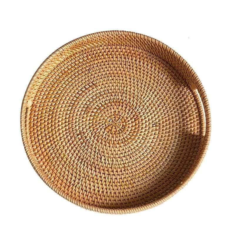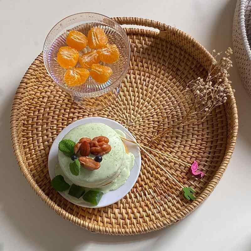 収納かご 藤編み フルーツバスケット お菓子入れ パンかご デザートトレイ 手編み 小物入れ ナチュラル シンプル おしゃれ 天然素材 丸型 リビング ダイニング 食卓 ディスプレイ