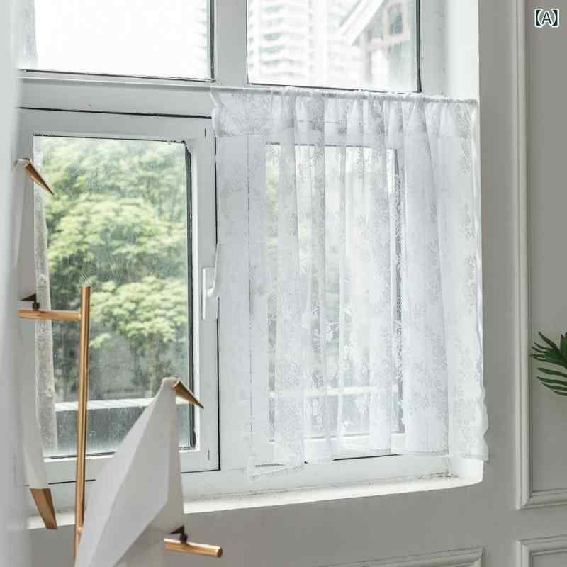 カフェカーテン 小窓カーテン ショート丈 レース 花柄 透け感 シアー アメリカンスタイル ヨーロピアン 突っ張り棒対応 間仕切り ポリエステル リビング 寝室 ダイニング