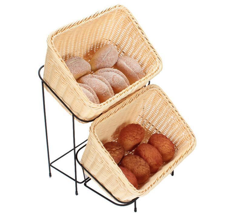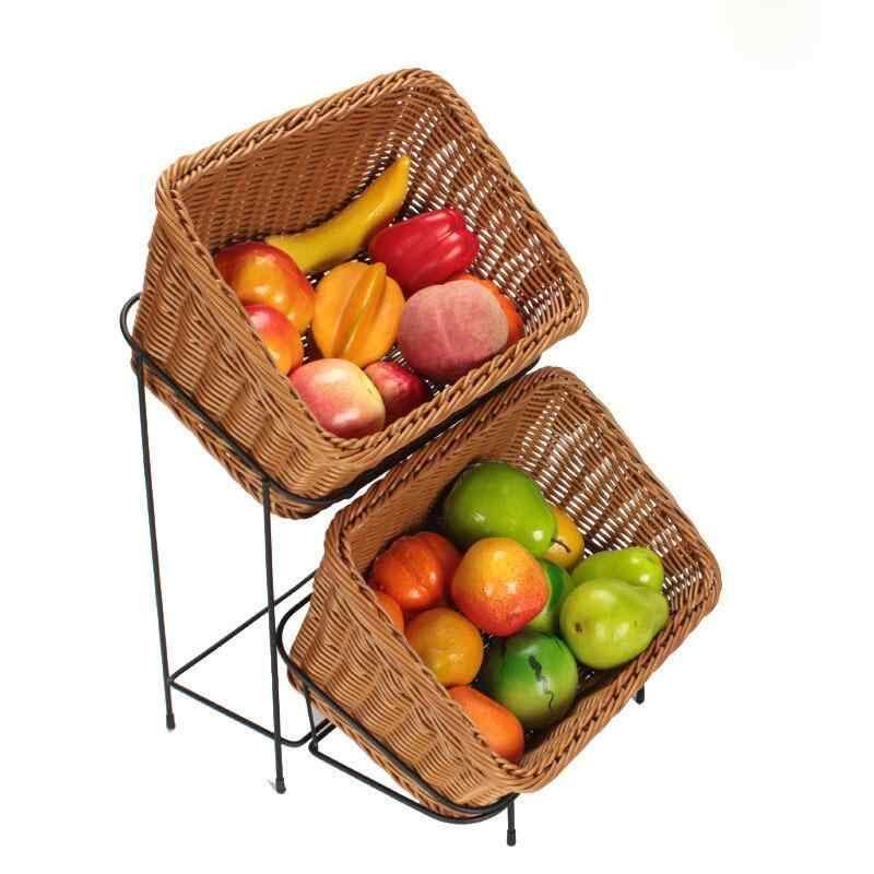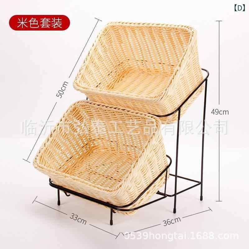 バスケット 二層 ディスプレイ 陳列 パン 野菜 フルーツ ステーショナリー 収納かご 陳列棚 売り場用 アイアンラック 店舗什器 PP製 多機能 コーヒー アイボリー