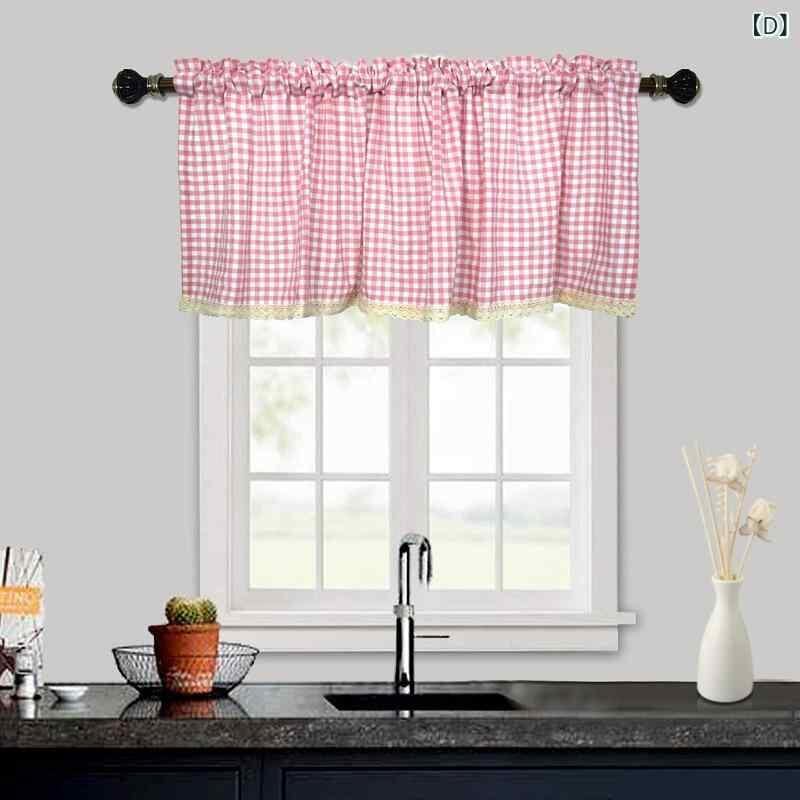 カフェカーテン シンプル 和風 チェック柄 ショート丈 小窓用 キッチン用 ポリエステル 採光 リビング 寝室 ダイニング