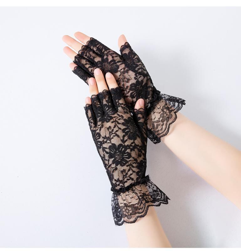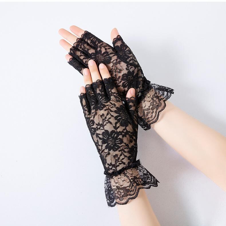手袋 レディース 指なし ハーフフィンガー レース UVカット 紫外線対策 スマホ対応 運転 ドライブ サイクリング 結婚式 パーティー お呼ばれ デイリーユース フォーマル 通気性 ブラック ホワイト