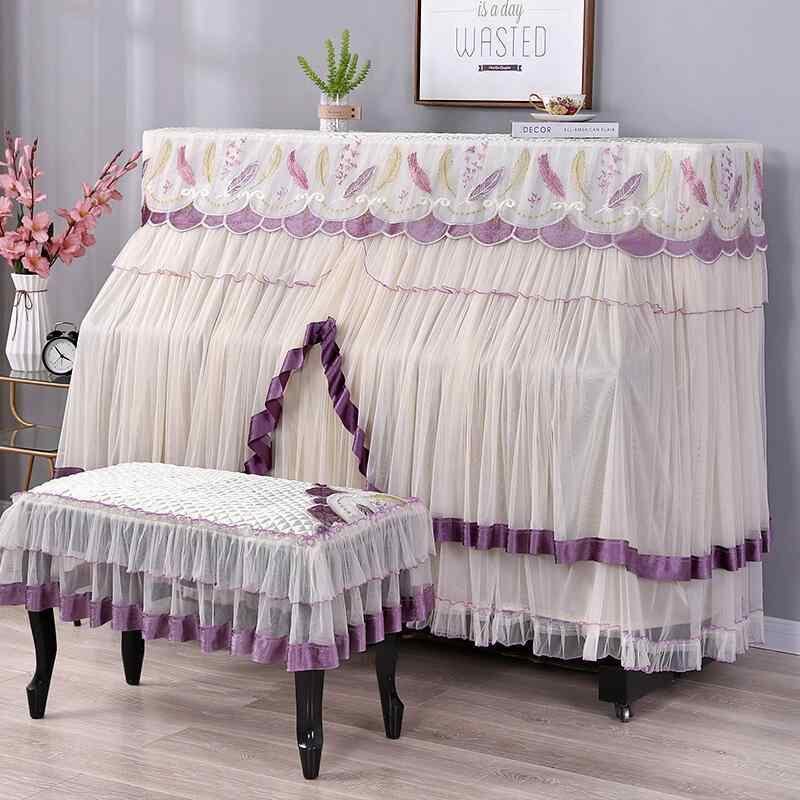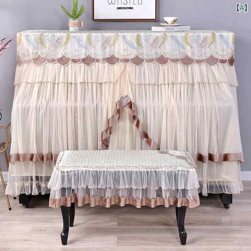 ピアノカバー 刺繍飾り レース 裏地付き 全面カバー シンプル 布製 防塵 カートゥーン フェザー柄 高級感 エレガント 傷防止 汚れ防止 演奏対応 インテリア 鍵盤保護