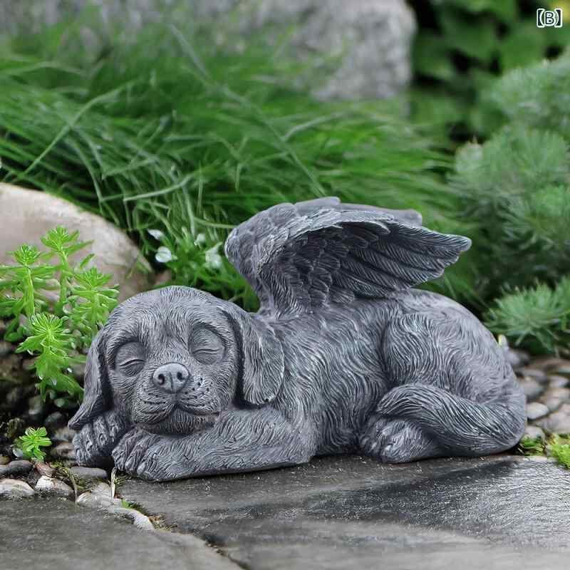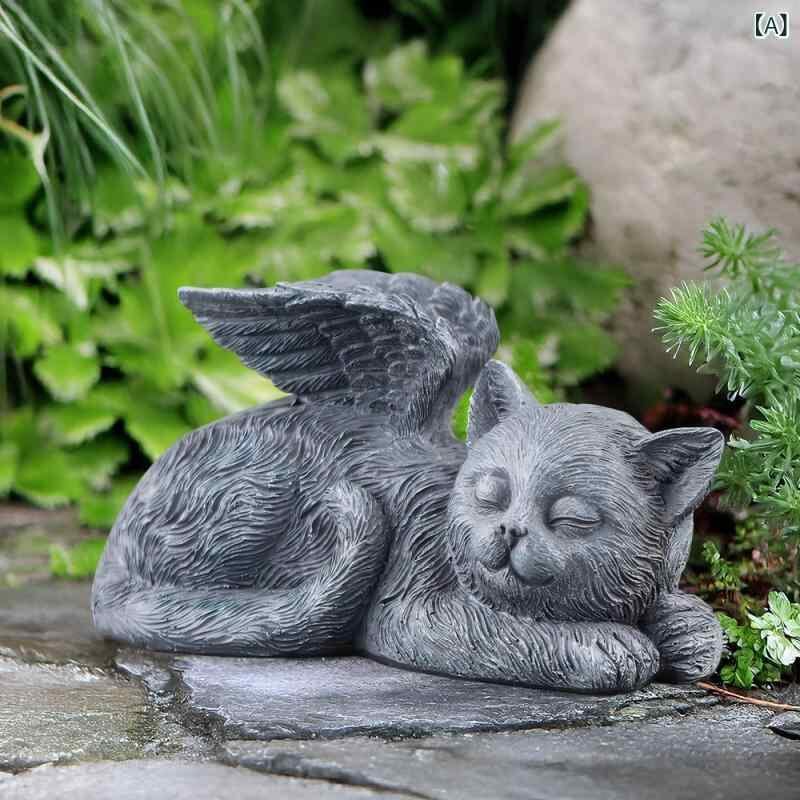 ペット用 墓石 供養碑 メモリアルストーン 合成樹脂製 天使 動物像 猫 犬 オブジェ 置物 ガーデニング 庭園装飾 屋外 ヨーロピアン風