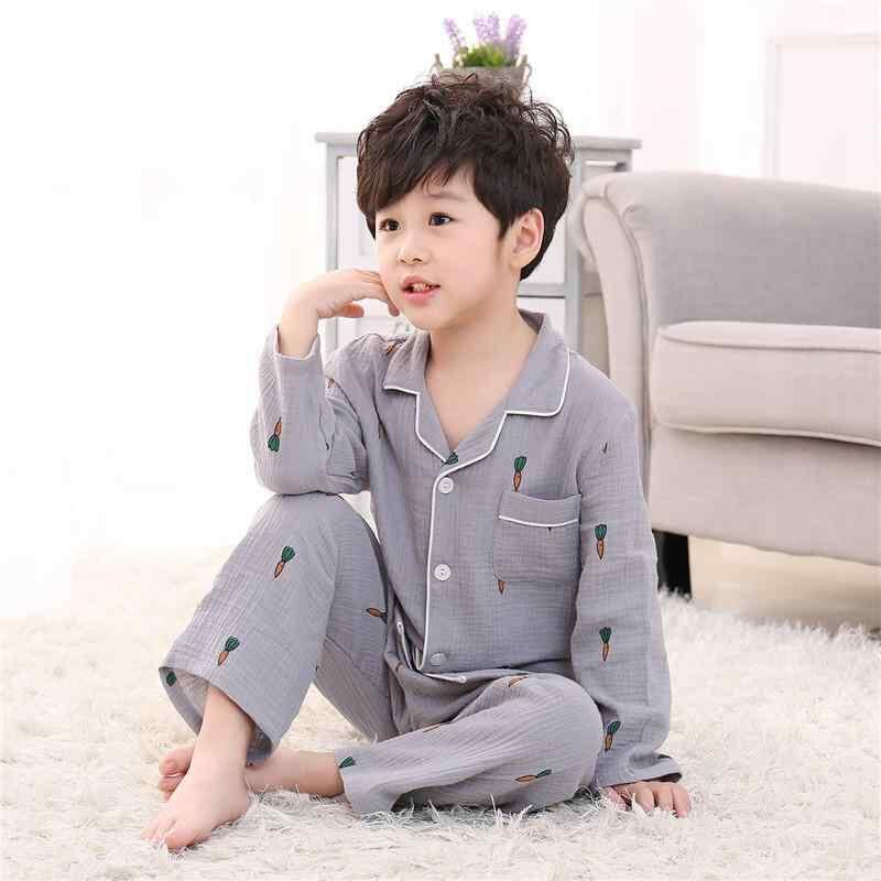 パジャマ キッズ 男の子 女の子 子供用 ダブルガーゼ 綿100% 長袖 ルームウェア 上下セット ニンジン柄 吸湿速乾 優しい肌触り 部屋着 カジュアル スリーパー ピンク グレー 通年