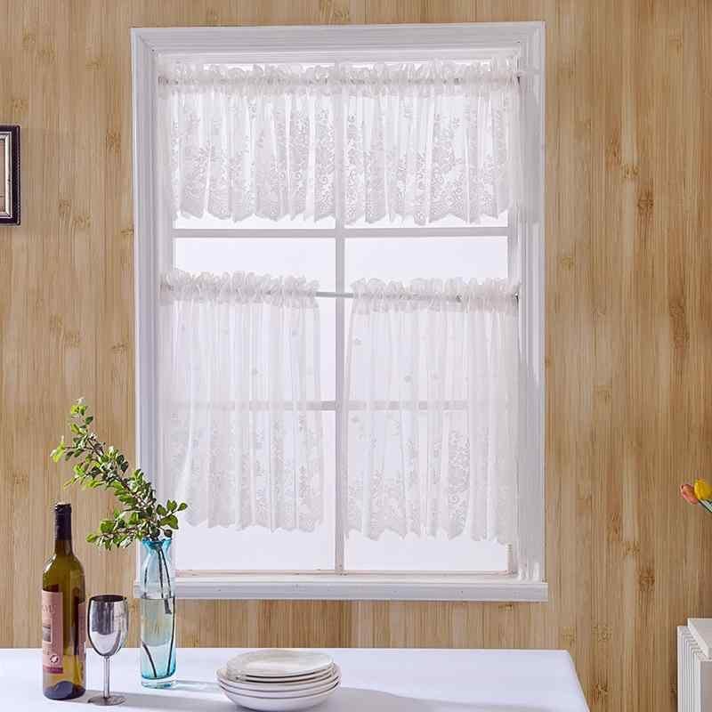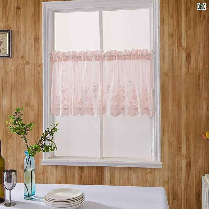 カフェカーテン キッチン用 小窓用 ブルー レース ショート丈 透光 目隠し効果 北欧風 ナチュラルデザイン 突っ張り棒式 ポリエステル素材