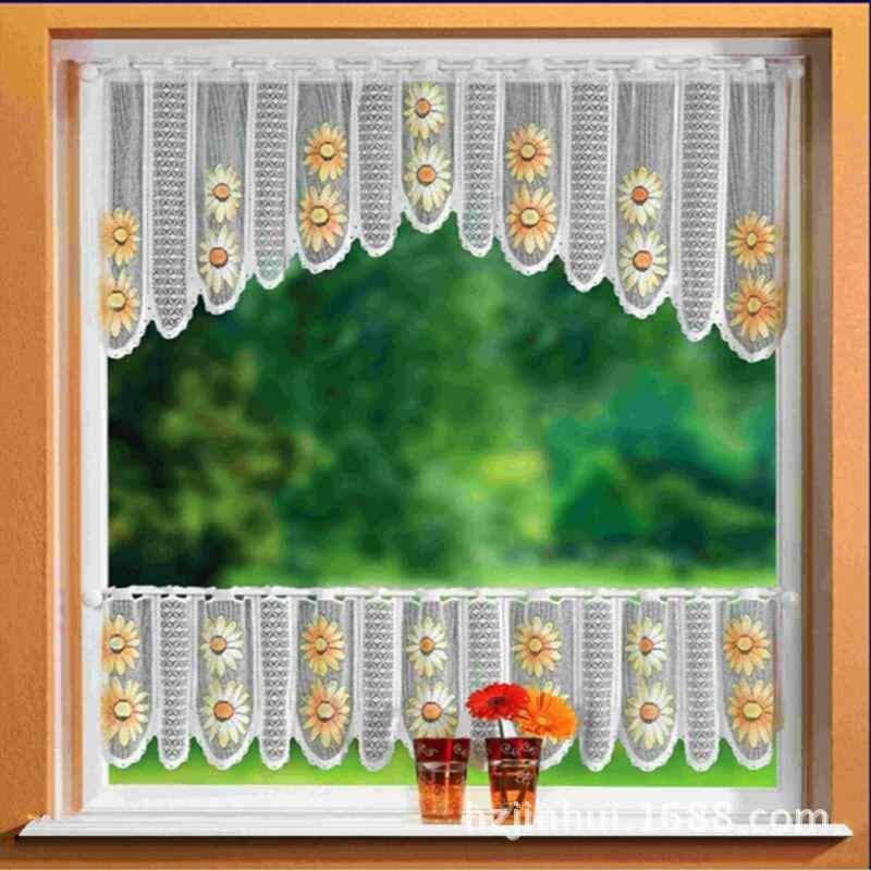 レースカーテン ヨーロピアンデザイン 白 シンプル モダンテイスト ポリエステル製 小窓用 ショート丈 ハーフ丈 カフェカーテン 間仕切り 目隠し ドアカーテン 透け感 通気性