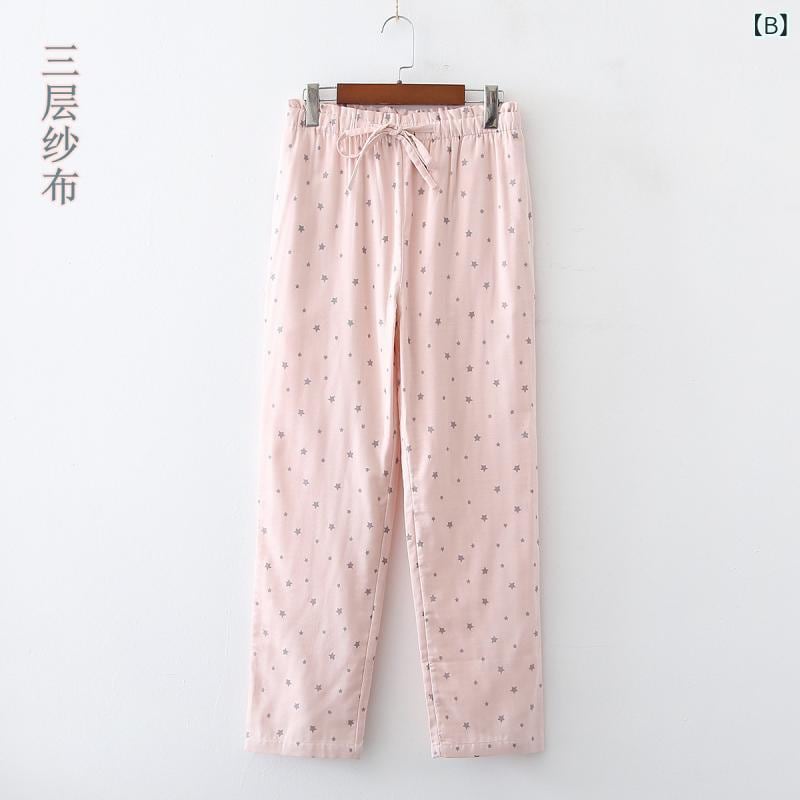 パジャマパンツ レディース 女性用 綿100% ダブルガーゼ ロングパンツ 部屋着 ルームウェア 大きいサイズ ゆったり 快適 通気性 薄手 寝間着 おうち時間 カジュアル