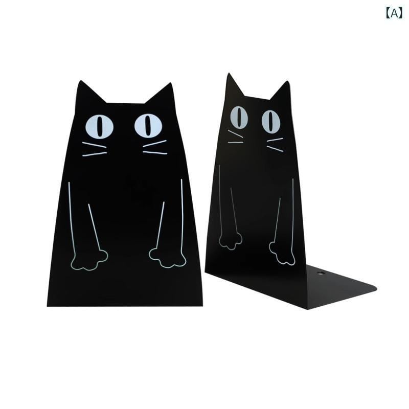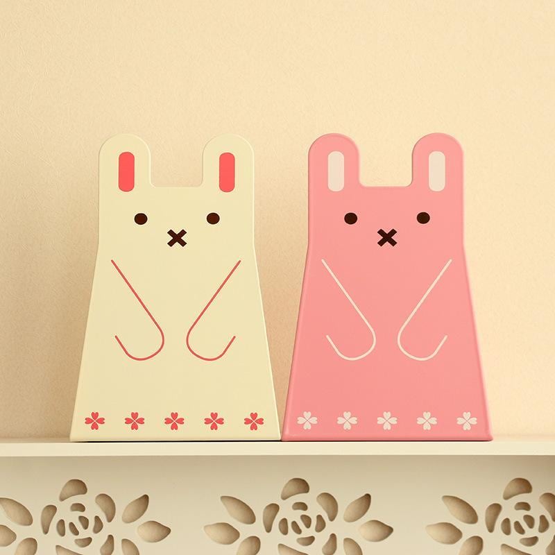 ブックエンド かわいい 猫 うさぎ キャラクター 型抜き ブリキ製 おしゃれ 鉄製 本立て オフィス 学習 デスク周り 勉強 ステーショナリー ブラック ブルー ピンク