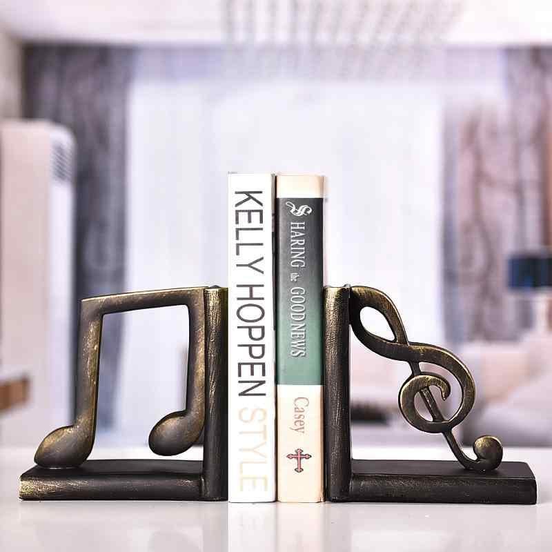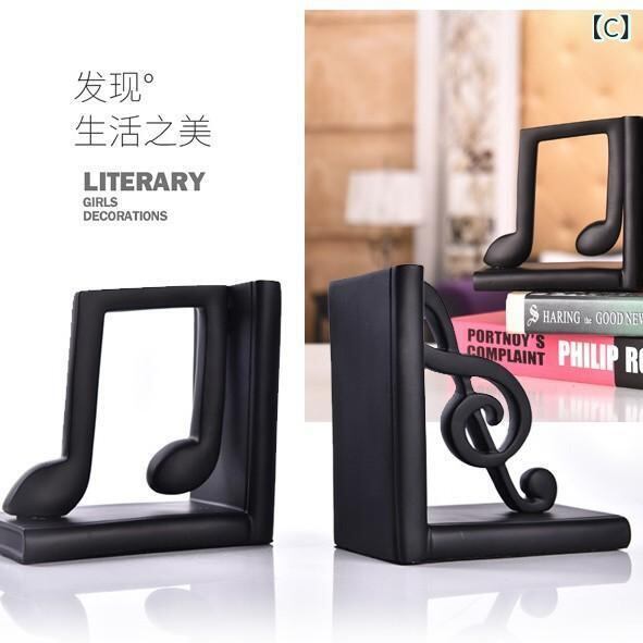 ブックエンド 抽象 樹脂製 音符モチーフ ブックスタンド 書見台 工芸品 オブジェ アンティーク調 レトロ風 デスク飾り リビング 書斎 インテリア モダン シンプルデザイン ホワイト ブラック