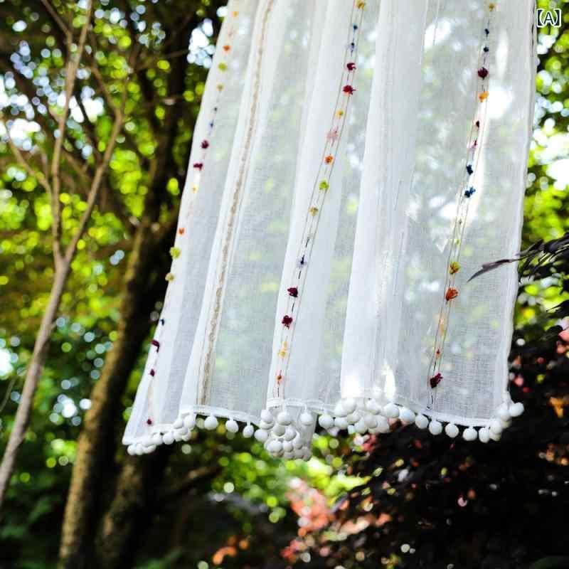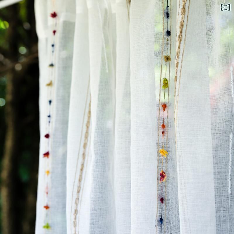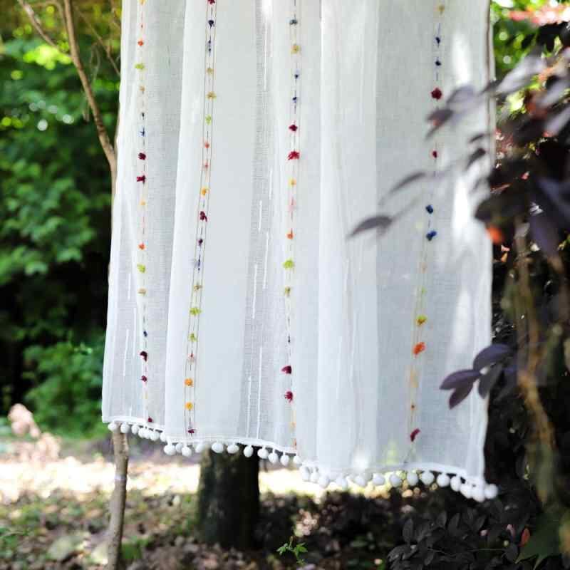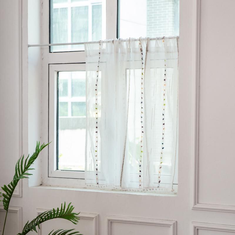 カフェカーテン 突っ張り棒 ポール通し 目隠し 間仕切り 玄関 廊下 キッチン リビング 北欧風 ナチュラル シンプル レース シアー カラフル ドット柄 光を通す 小窓用 おしゃれ