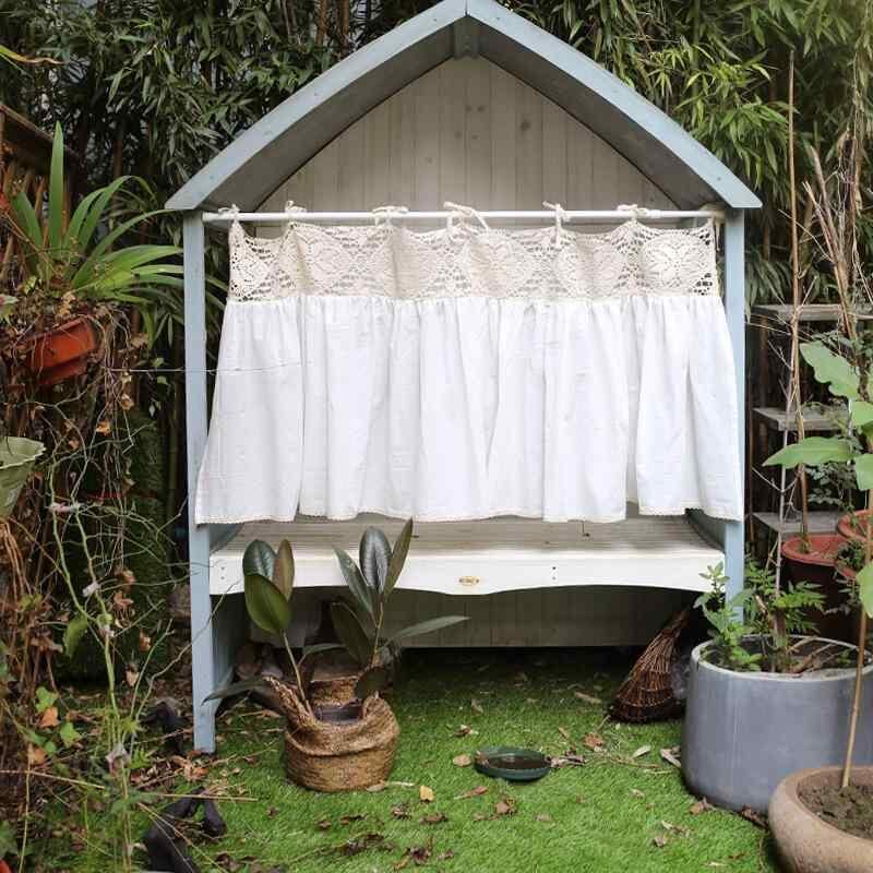 カフェカーテン コットン 綿素材 かぎ針編み クロシェ編み ショート丈 短丈 アメリカンスタイル ホワイト 窓のれん 間仕切り 目隠し リビング 寝室 ダイニング キッチン