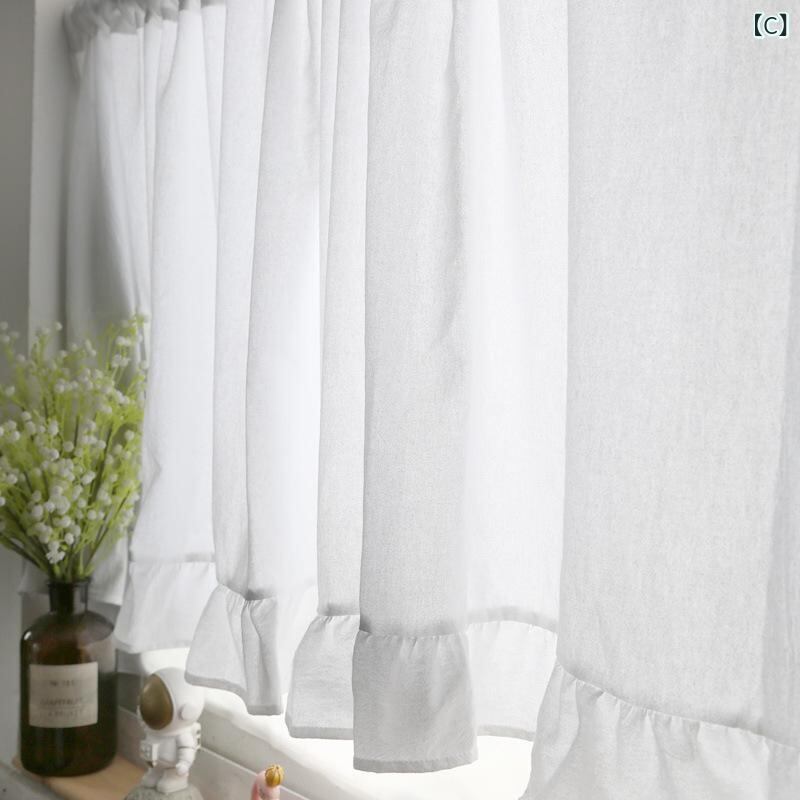 カフェカーテン のれん フレンチカントリースタイル ホワイト コットン生地 ショート丈 出窓 吊り戸棚 目隠し 間仕切り ドアカーテン リビング キッチン ダイニング 寝室 子供部屋 模様替え ポンポン フリル 採光
