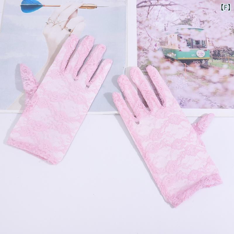 手袋 レディース 女性用 運転用 電動自転車用 ドライブ 通勤 デイリーユース UVカット 日焼け止め ショート丈 薄手 通気性 接触冷感 レース ナイロン ポリエステル セクシー ウェディング 花嫁 ブライダル グローブ