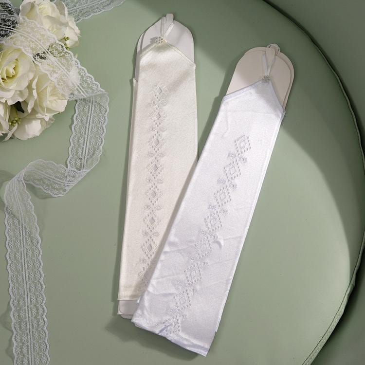 ウェディンググローブ レディース 結婚式 披露宴 レース サテン 光沢感 ショート丈 ロング丈 指なし ハーフフィンガー ホワイト オフホワイト アイボリー 日焼け対策 UV対策 オールシーズン