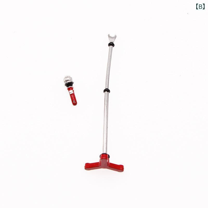ドールハウス アクセサリー 1/12スケール ミニチュア マイク 合金製 ブラック レッド 撮影小物 ディスプレイ ドール用 情景模型