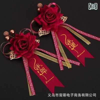 コサージュ 結婚式 新郎 新婦 ブートニア ブライズメイド 介添人 親族 ゲスト お祝い用 和風 造花 バラ ローズ 胸飾り 手作り 布製 ワインレッド 深紅 ボルドー ウェディング フォーマル セレモニー アイテム