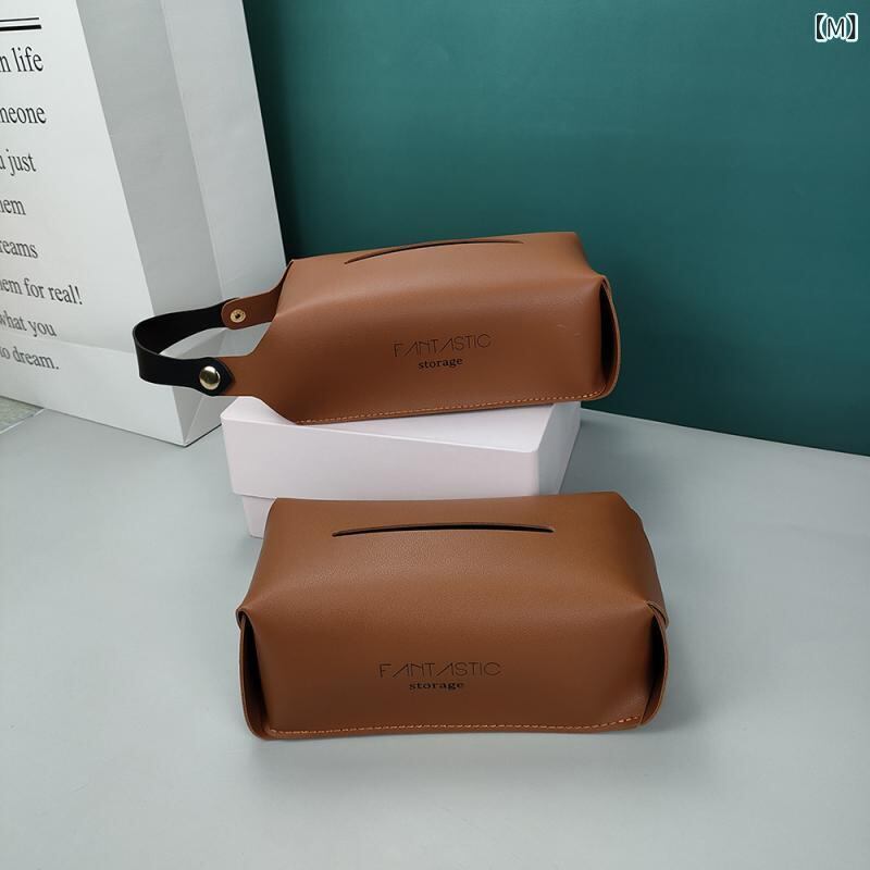 ・主な素材: レザー・適用ティッシュ: ボックスティッシュ・適用シーン: 車内、リビング、洗面所・贈答用途: 引越し祝い、販促品・スタイル: モダンミニマリスト・カラー展開: レッド、ブラック、ホワイト、アンバー、カーキ、ダークグリーン、ブラウン、ディープパープル、スカイブルー、インディゴブルー、アクアグリーン、ピンク、オーカー・機能: 多機能