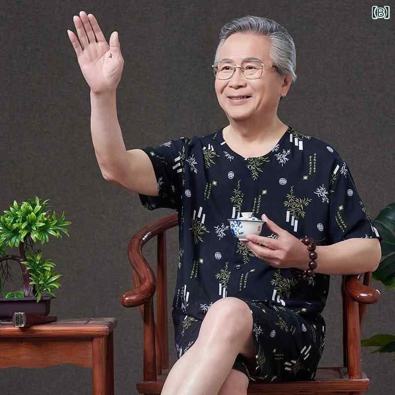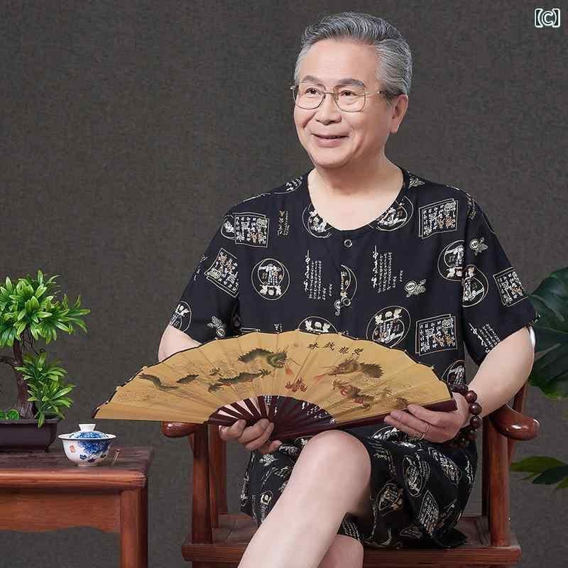 パジャマ メンズ シニア 男性用 夏用 部屋着 ルームウェア 再生繊維 薄手 通気性 快適 前開き 半袖 ショートパンツ 上下セット 寝間着