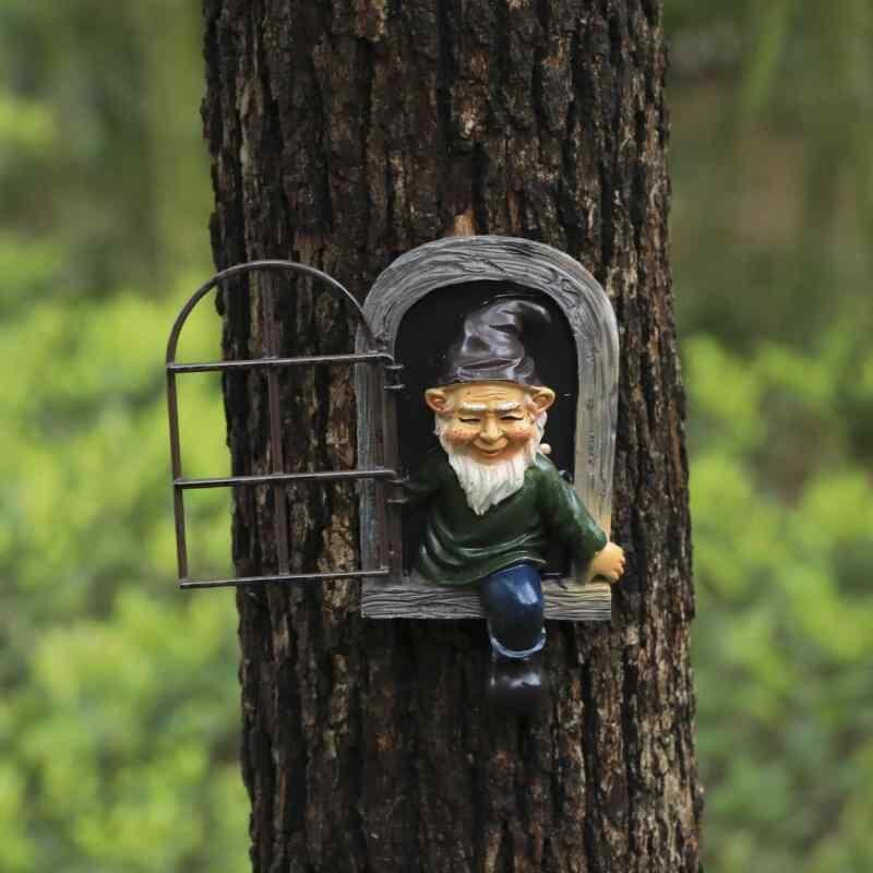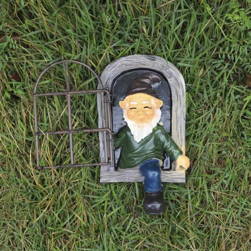 ガーデンオーナメント 窓登り 白ひげ ドワーフ ノーム 小人 レジン製 樹脂 置物 フィギュア かわいい 庭 玄関 室内 屋外 インテリア オブジェ 装飾 デコレーション