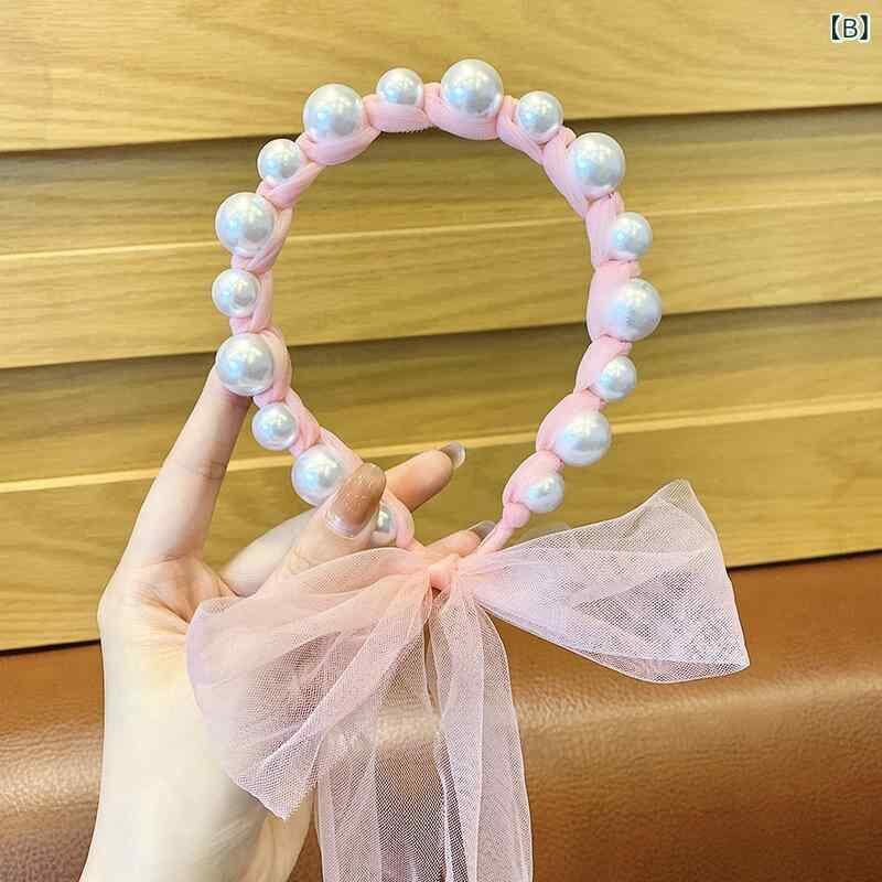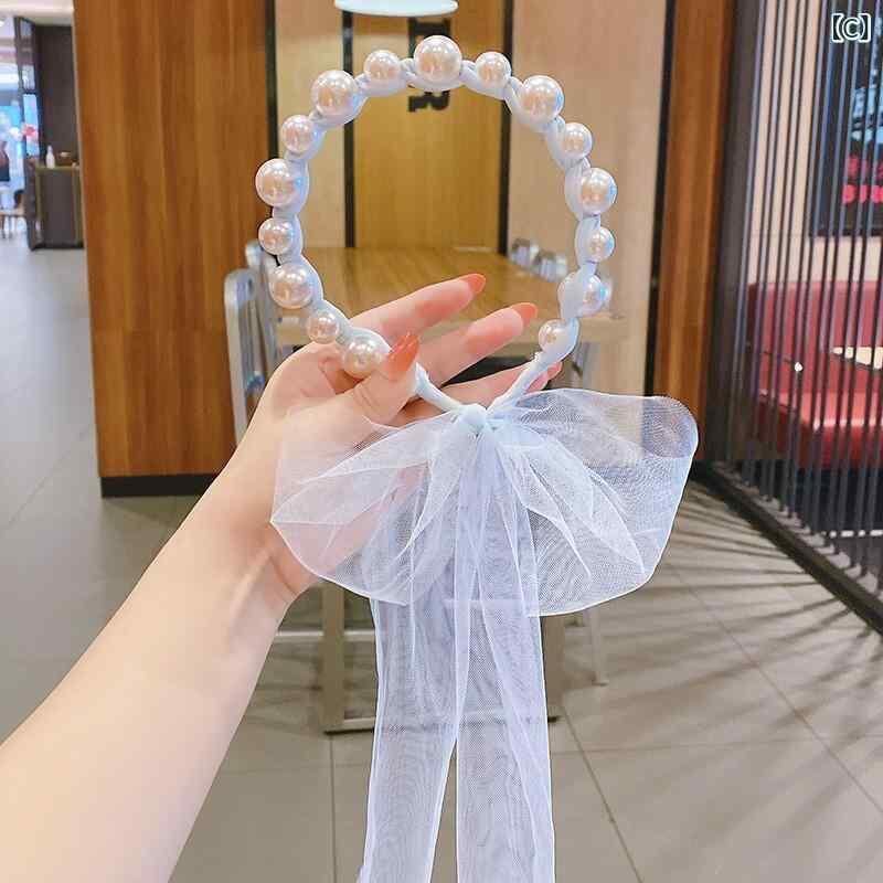 カチューシャ 女の子 キッズ パール リボン 蝶結び チュール メッシュ プリンセス風 上品 エレガント 可憐 華やか 発表会 七五三 結婚式 パーティー フォーマル お出かけ 髪飾り ヘアアクセサリー