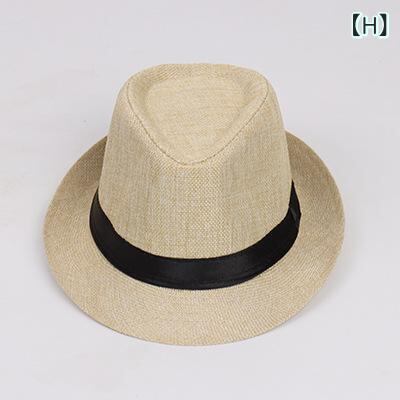 ハット メンズ レディース ユニセックス フェドラハット 中折れハット リネン 麻 夏用 無地 巻きつば 短いつば ブリティッシュ クラシック 日よけ UVカット 紫外線対策