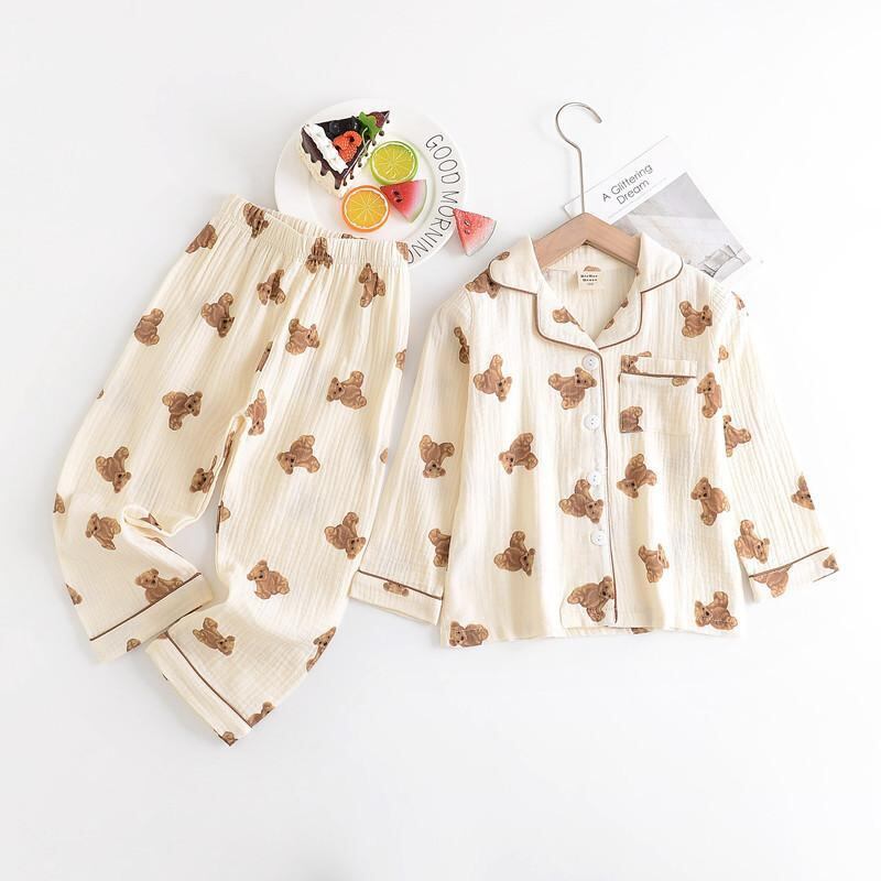 パジャマ キッズ 男の子 女の子 綿100% ガーゼ ルームウェア 長袖 吸湿速乾 薄手 柔らかい肌触り かわいい総柄 部屋着 エアコン対策 春夏秋