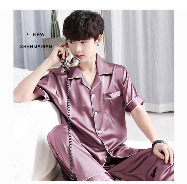 ・カテゴリ: パジャマ ・素材: シルク風 ・主な素材: ポリエステル100% ・厚さ: 超薄手 ・デザイン: 前開き ・ネックライン: Vネック ・パンツ丈: ロング丈 ・機能: リラックス、睡眠、バスタイム、部屋着、涼感、快適、ワンマイルウェア ・対象: 男性 ・利用シーン: 屋外、室内 ・スタイル: シンプルカジュアル ・カラー展開: ブラック、ミストブルー ・サイズ展開: L、XL、XXL、XXXL