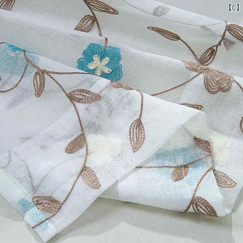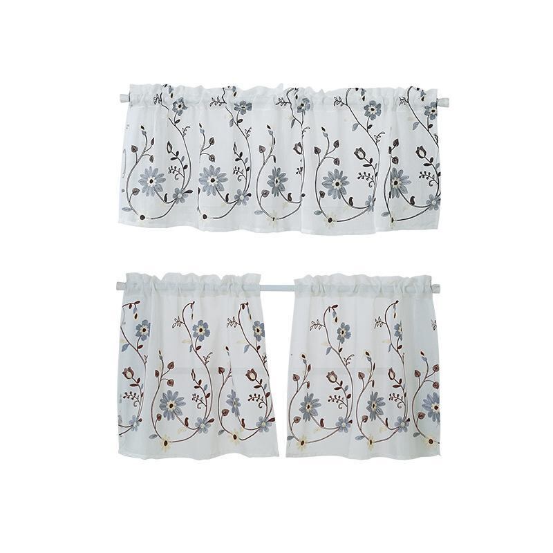 カフェカーテン 小窓カーテン ショート丈 日韓風 刺繍 ポリエステル製 光を取り込む 採光 キッチン 台所 リビング 寝室 ダイニング 目隠し 間仕切り モダン シンプル ブルー系 グレー