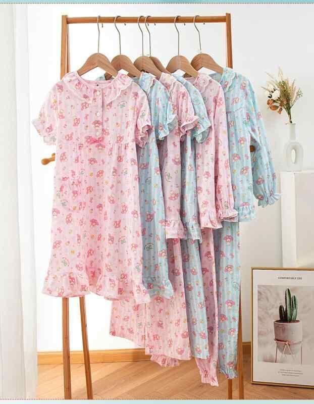 パジャマ 女の子 少女 綿100% ダブルガーゼ うさぎ柄 薄手 セットアップ 長袖 半袖 長ズボン ショートパンツ 七分丈 ドールカラー 丸襟 通気性 快適 吸湿性 ルームウェア 部屋着 おうち時間