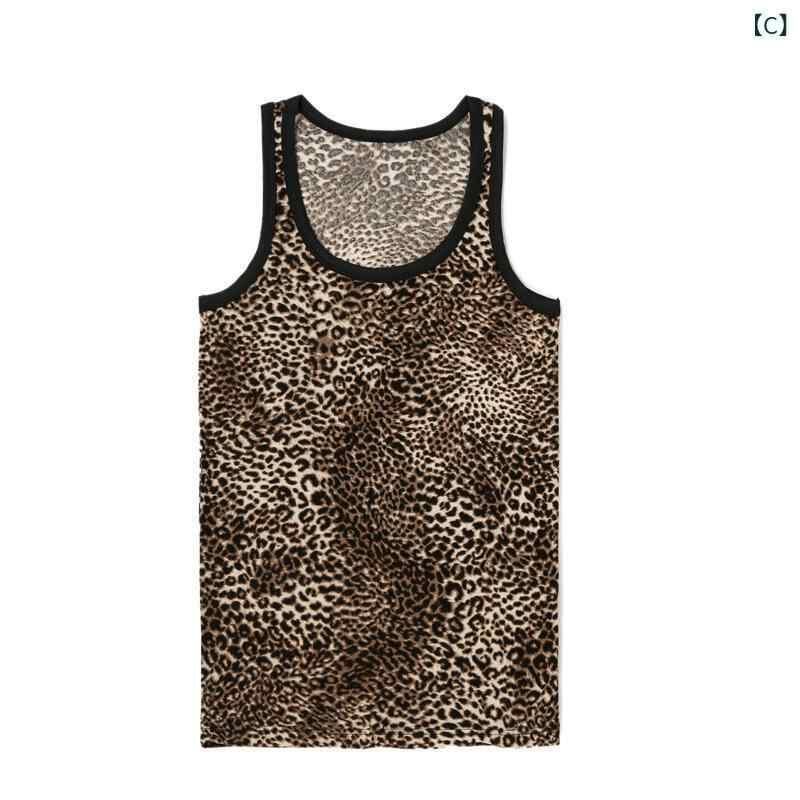 タンクトップ メンズ ヒョウ柄 レオパード柄 セクシー クルーネック 丸首 ポリエステル素材 若者向け 普段使い 夏 レギュラーフィット