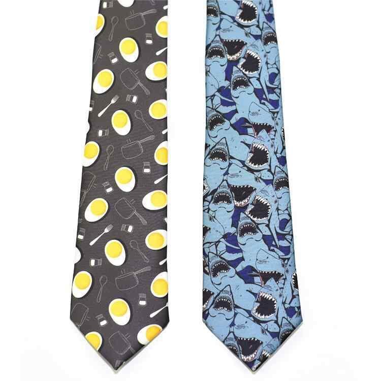ネクタイ 男女兼用 ポリエステル プリント デジタル印刷 キャラクター柄 アニマル柄 サメ柄 植物柄 幅7.5cm レギュラー幅 カジュアルスタイル 面白い ユニーク ユーモラス ウール裏地