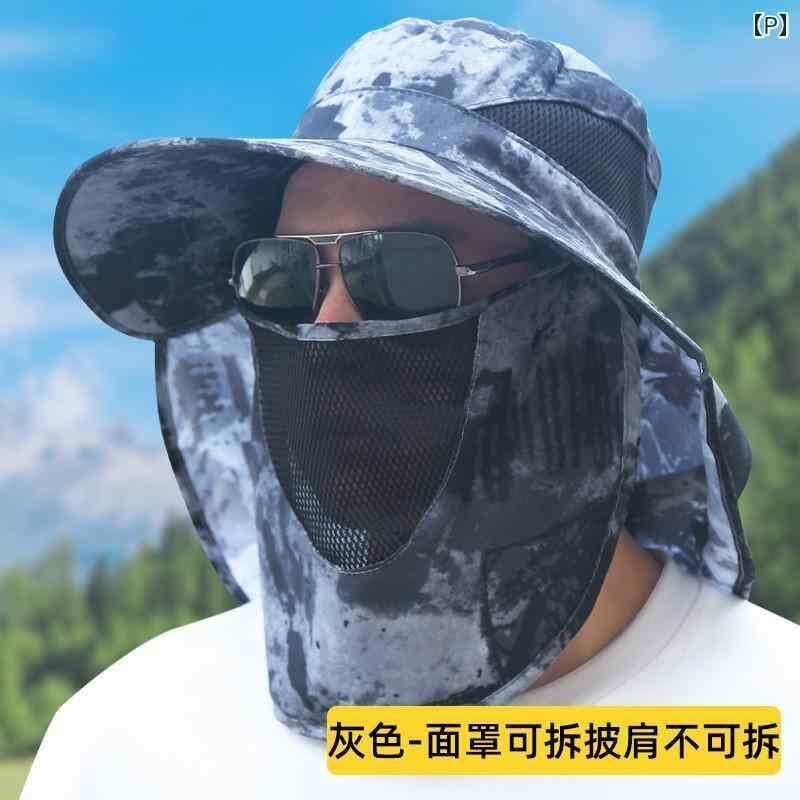 ハット メンズ UVカット サファリハット 日よけ帽子 フェイスカバー付き 首元カバー つば広 ワイドブリム 通気性 釣り アウトドア レジャー 夏用 スポーツ観戦 ポリエステル コットンブレンド 速乾 軽量 ドーム型 クール