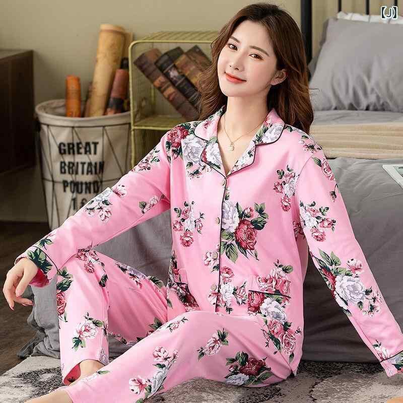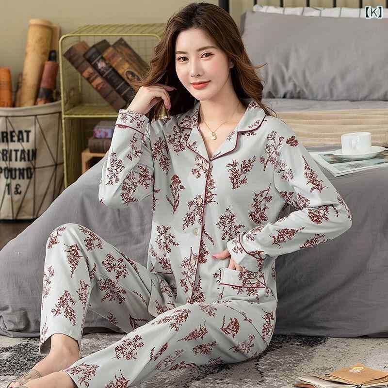 パジャマ レディース 中高齢 シニア 婦人用 春秋 長袖 綿100% コットン 薄手 ゆったり 大きいサイズ ルームウェア 部屋着 ナイトウェア セットアップ カジュアル ラウンドネック 丸首 保温性