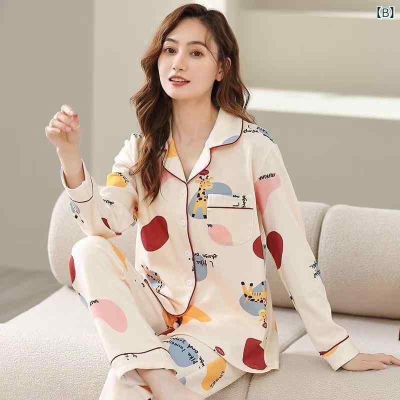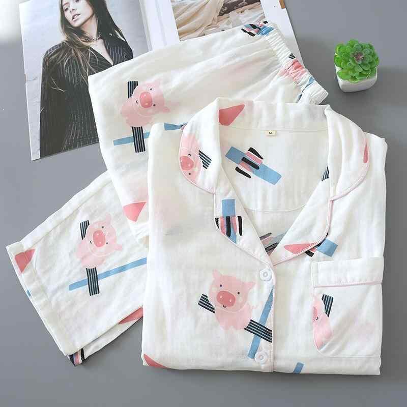 パジャマ レディース キャラクター 綿100% ダブルガーゼ 長袖 長ズボン セットアップ 春秋 薄手 かわいい ルームウェア 部屋着 コットン 天然素材 吸湿性 通気性 肌触り 軽量 快適 シンプル カジュアルスタイル