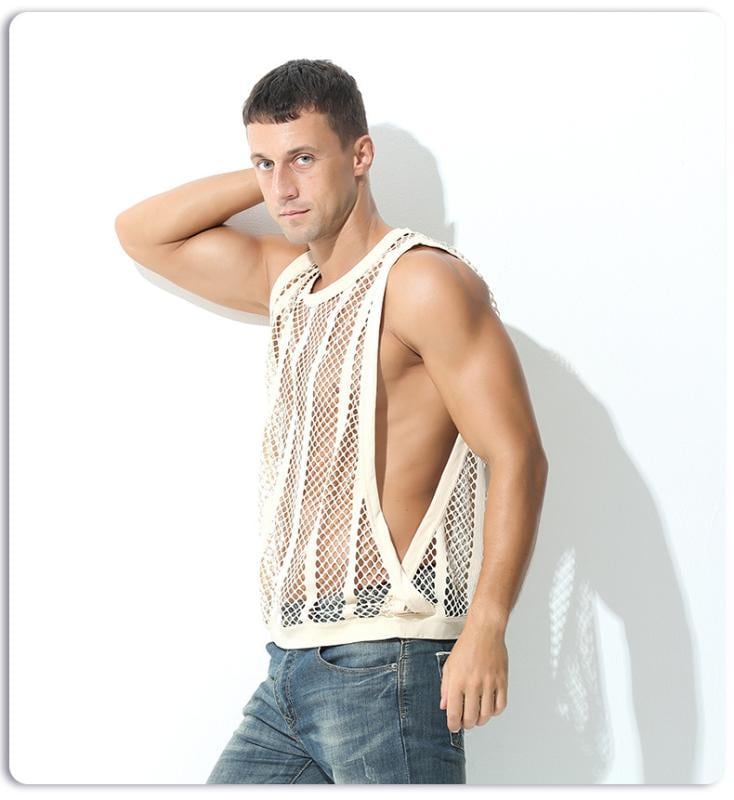タンクトップ メンズ スポーツ トレーニングウェア メッシュ スリット 無地 カジュアル 吸湿速乾 通気性 軽量 ポリエステル クルーネック ルーズフィット