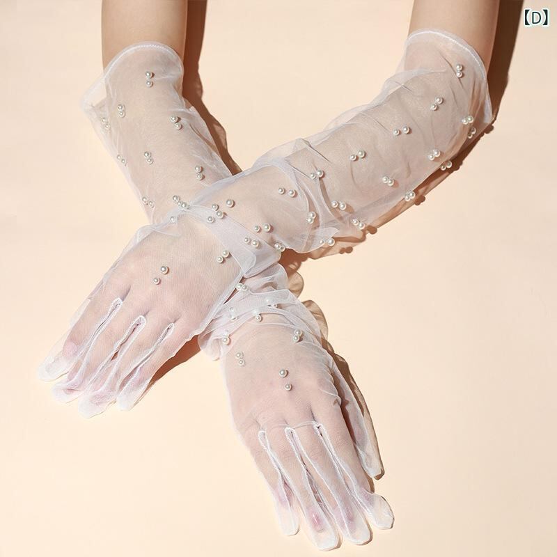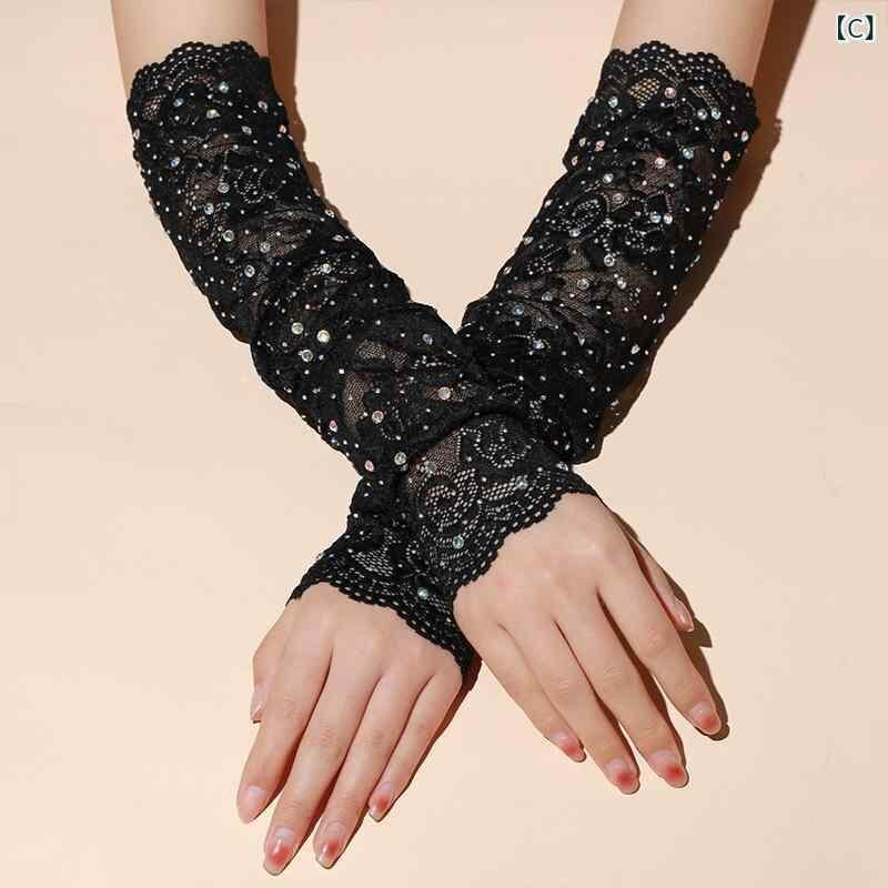 手袋 レディース レース サテン パール メッシュ ロング丈 レトロデザイン ウェディング 結婚式 ブライダル 花嫁 フォーマル パーティー ブラック フリーサイズ