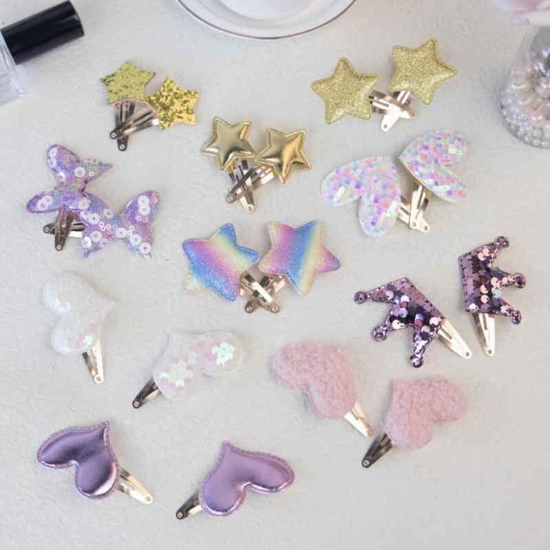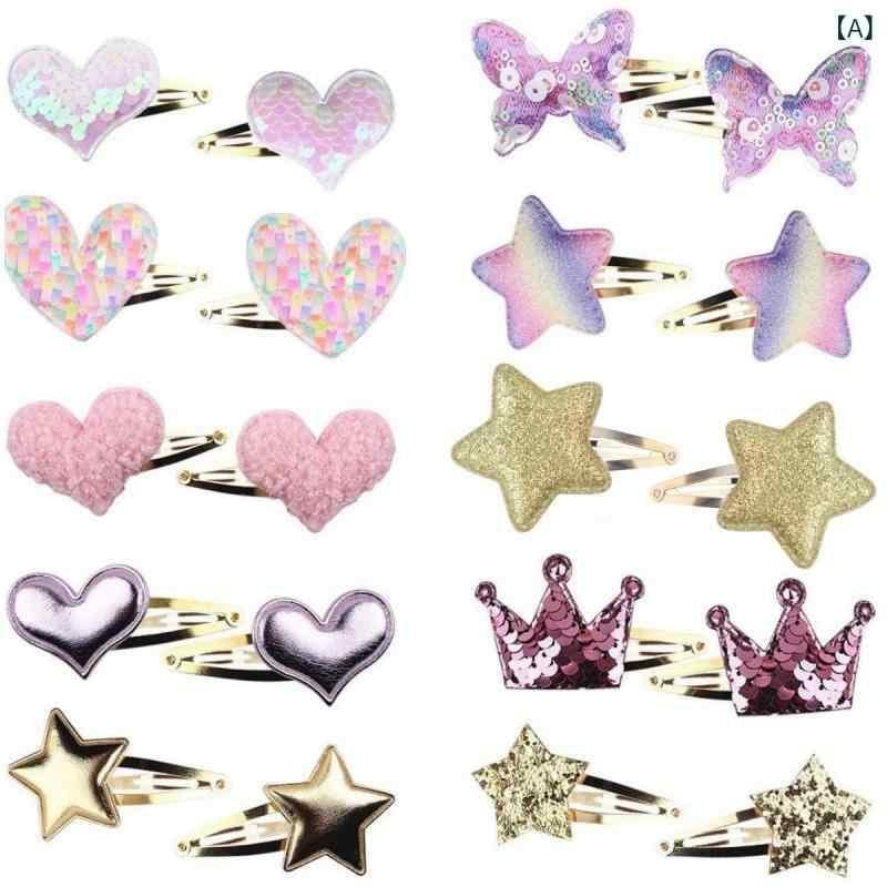 ヘアアクセサリー 子供 女の子 ベビー キッズ ジュニア かわいい グリッター 星 スター 蝶 ちょうちょ ハート 前髪クリップ ヘアピン ミックスカラー ハンドメイド 髪飾り