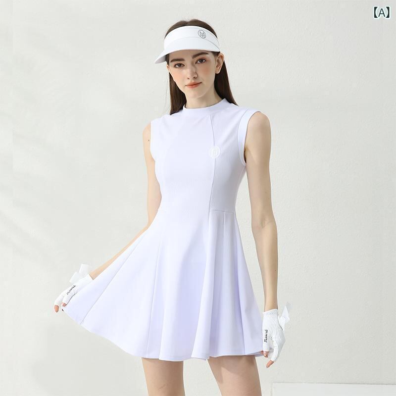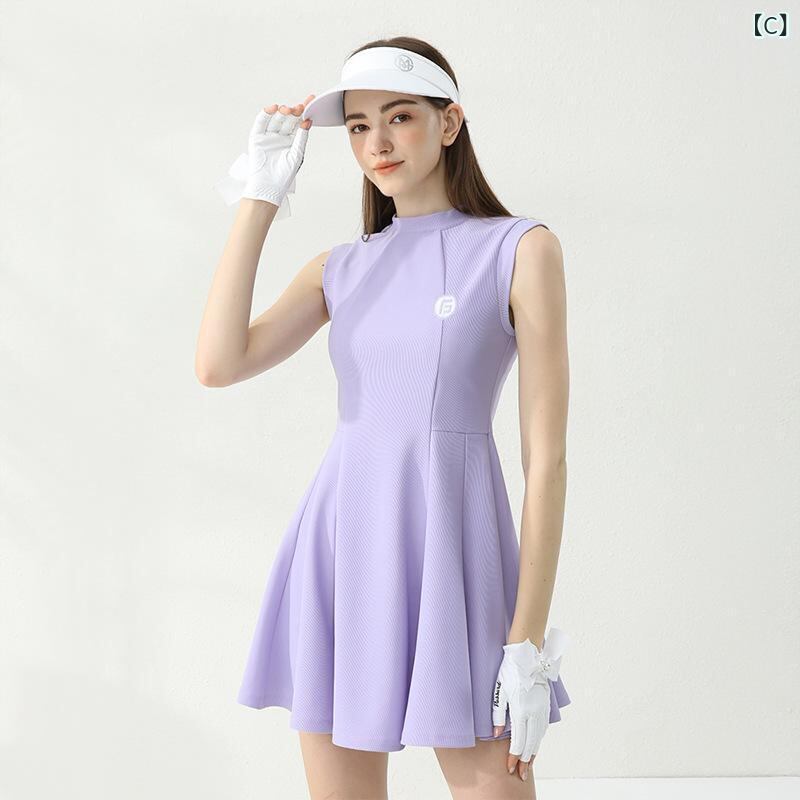 ワンピース ドレス レディース ノースリーブ ミニ丈 スカート ゴルフ テニス スポーツウェア ウエストシェイプ 細見え ポリエステル 竹繊維 カジュアル 白 黒 ラベンダー