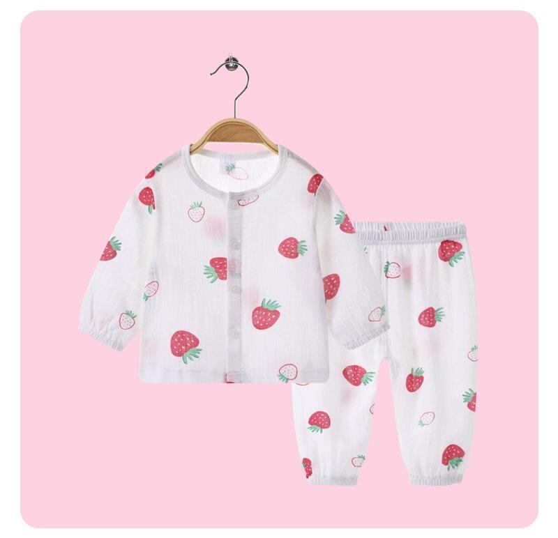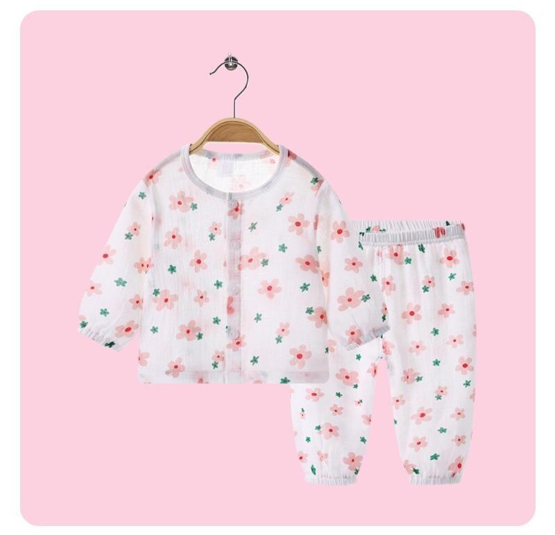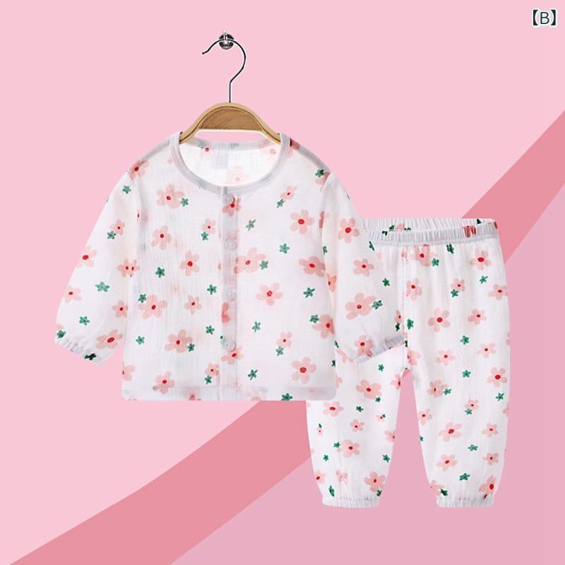 ルームウェア パジャマ キッズ ベビー 男の子 女の子 綿ガーゼ 薄手 長袖 ゆったり リラックス 冷房対策 コットン100% かわいい 動物 キャラクター柄 プリント 上下セット 春夏秋