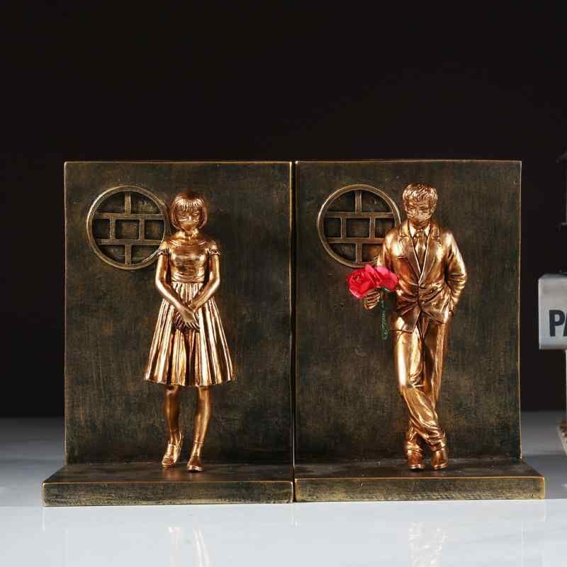 ブックエンド 樹脂製 ユニーク おしゃれな 書籍スタンド 置物 オブジェ リビング 書斎 玄関 卓上 インテリア 装飾品 ヨーロピアンテイスト モダン クラシック調 シルバー ゴールドカラー アート 工芸品 カップル向け