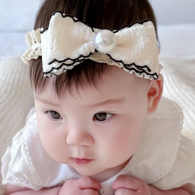 ヘアアクセサリー ベビー 女の子 韓国風 エレガント 上品 大粒パール リボン 蝶々結び 伸縮性 シフォン チュール 普段使い お出かけ フォーマル セレモニー アイボリー ピンク レッド 赤ちゃん 乳幼児 頭飾り 華やか